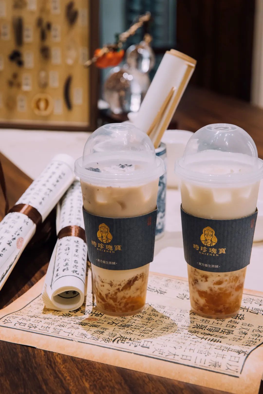 店内产品主打中式养生,主营本草鲜奶茶、本草茶咖啡、时珍方饮茶、中华神点和养生文创雅集。