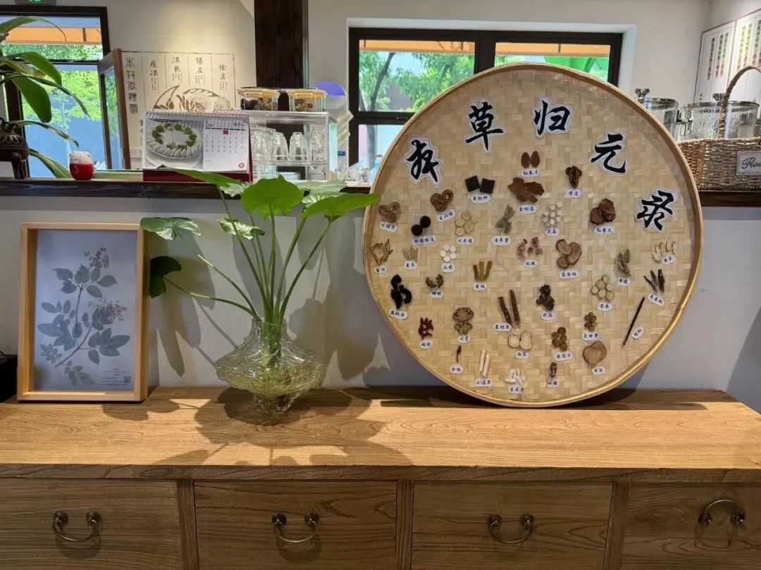 走进“杏林问茶”,就能闻到浓郁草药气息。空间宽敞明亮,简洁典雅,古朴的家具与装饰物悄然讲述着中医文化的博大精深。