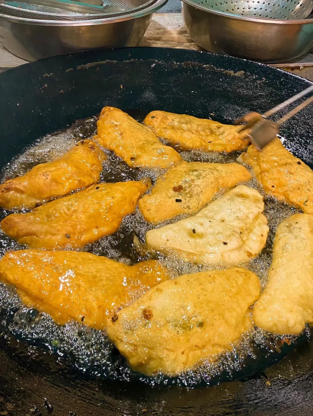 鸡冠饺也是物如其名,刚出锅的鸡冠饺金黄诱人,外形像一座小山,却具有轻盈可口的口感。