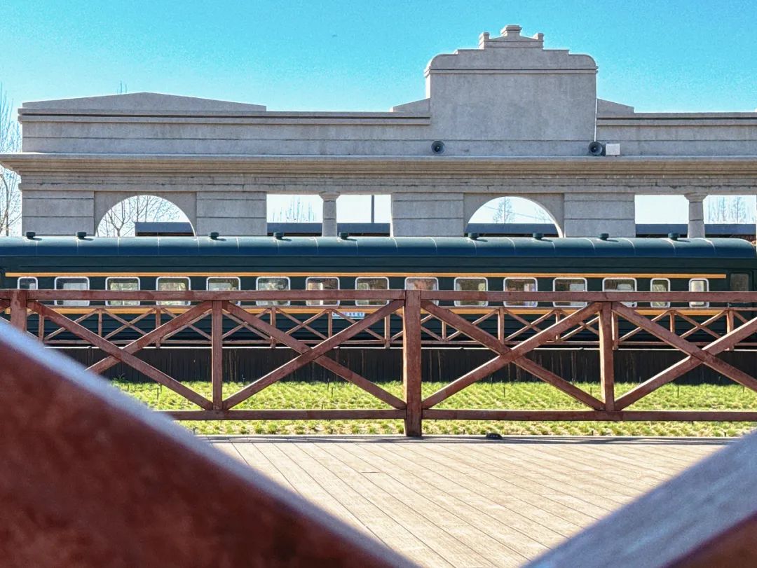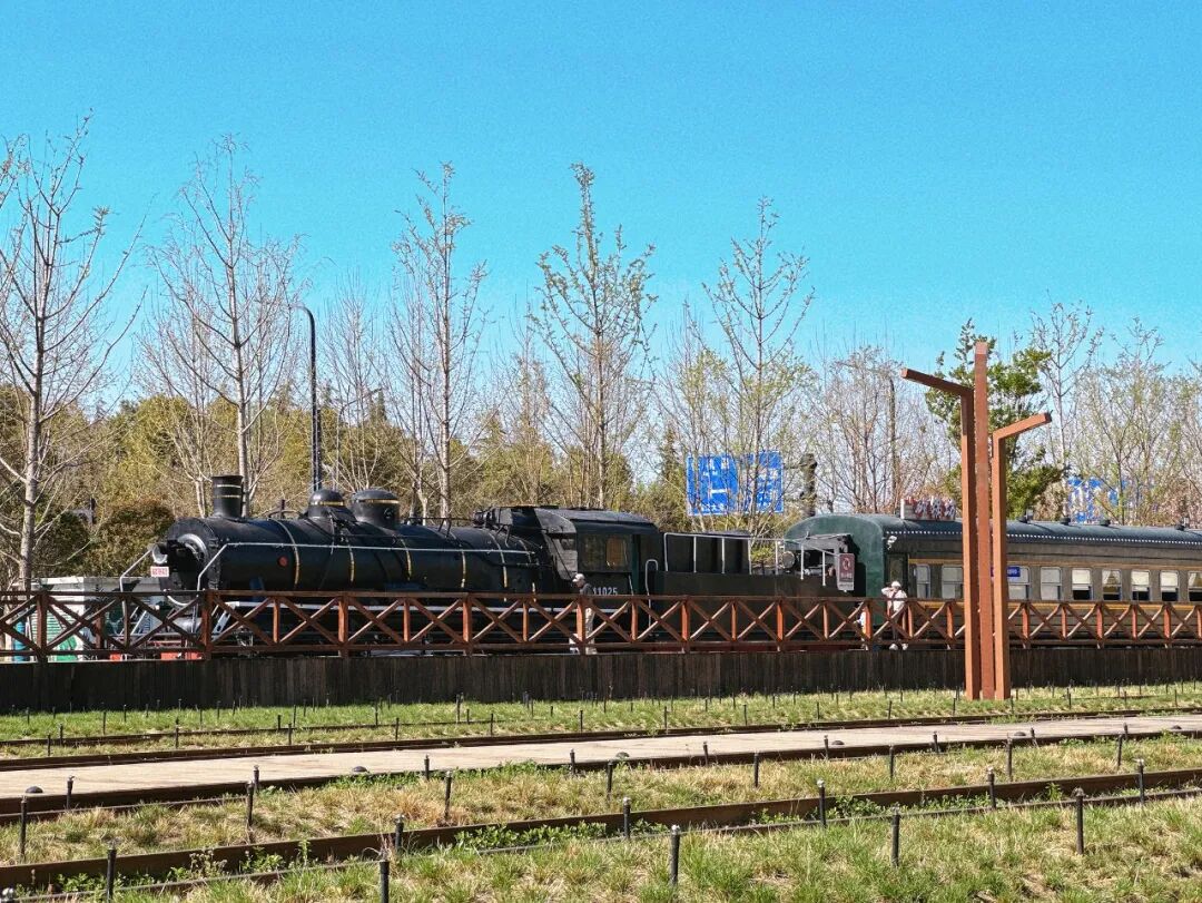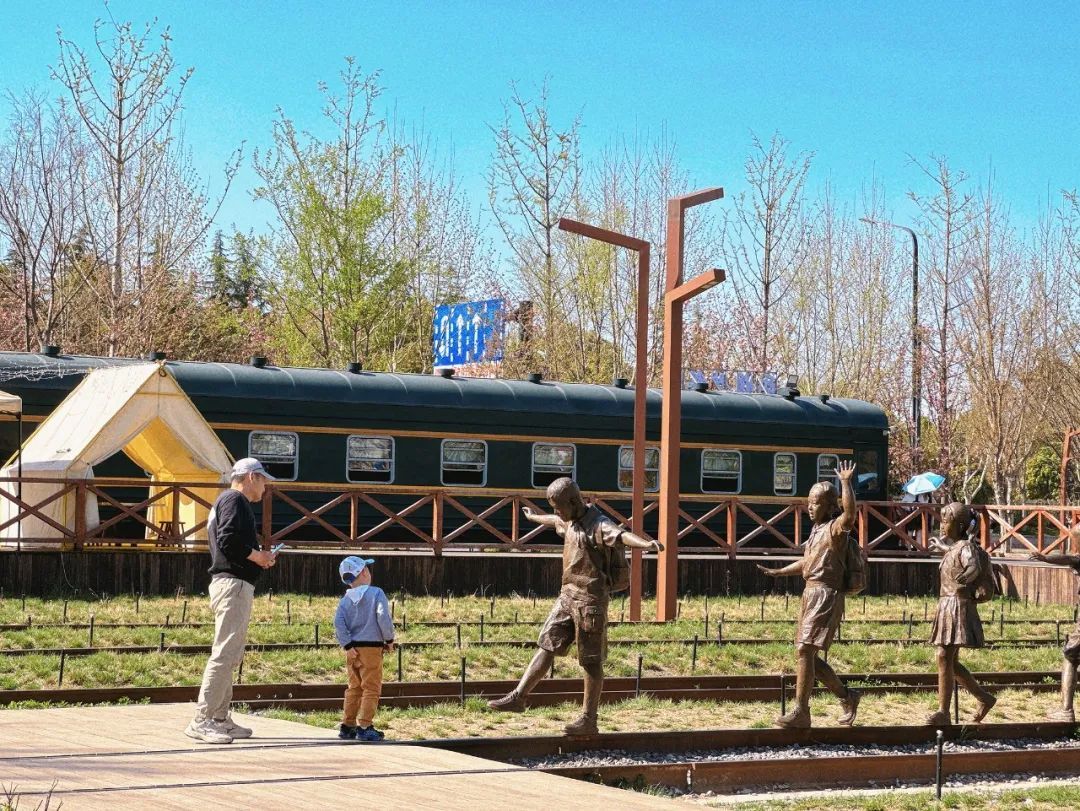 绿皮火车头、景观月台、铁轨花道等元素让眼前一亮。绿皮火车的车厢,均为老旧车厢翻新改造而成。火车车厢旁边还搭起三角帐篷,“露营风”加上绿皮火车的复古感,让人感觉到满满的诗意。