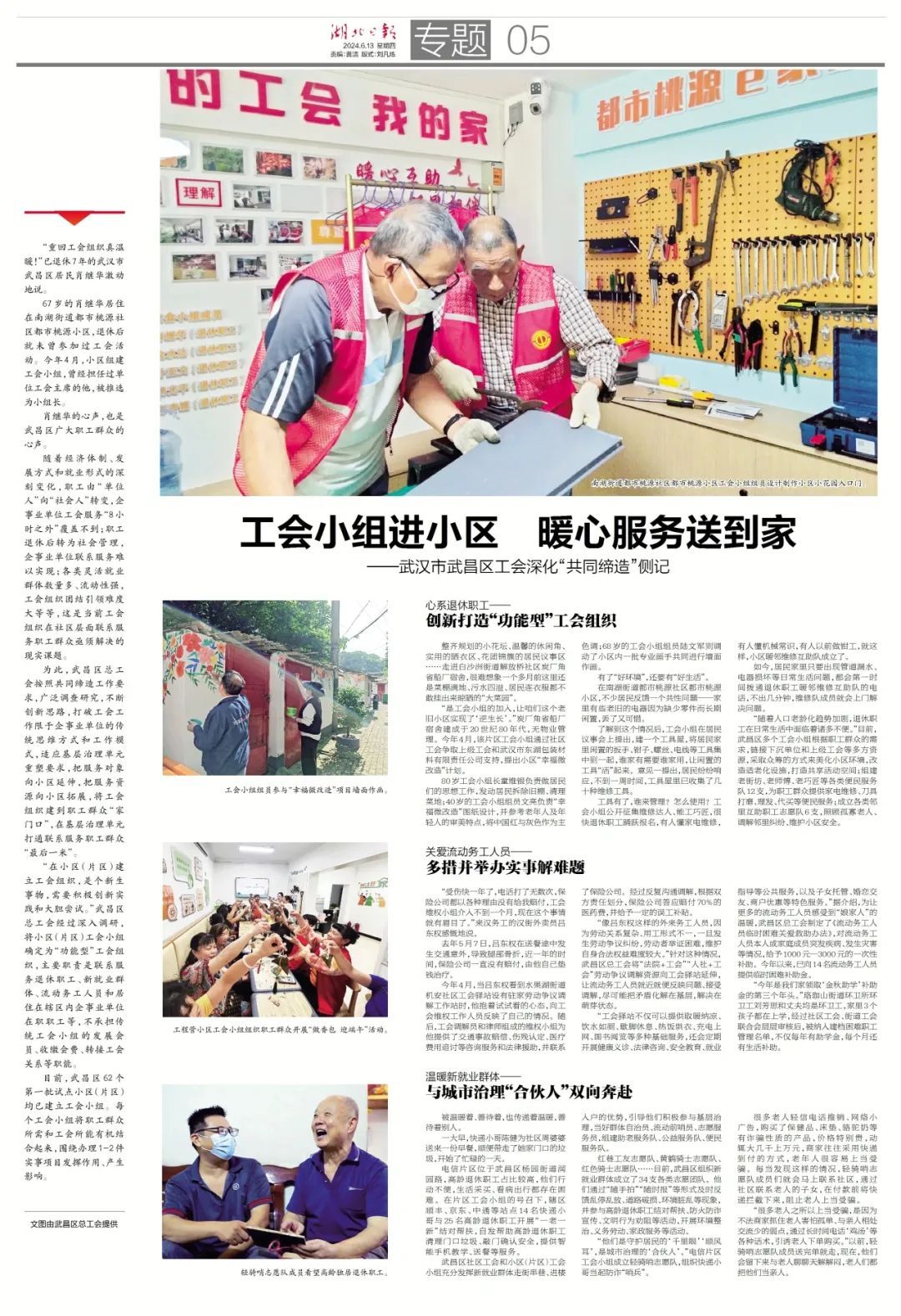 “重回工会组织真温暖!”已退休7年的武汉市武昌区居民肖继华激动地说。