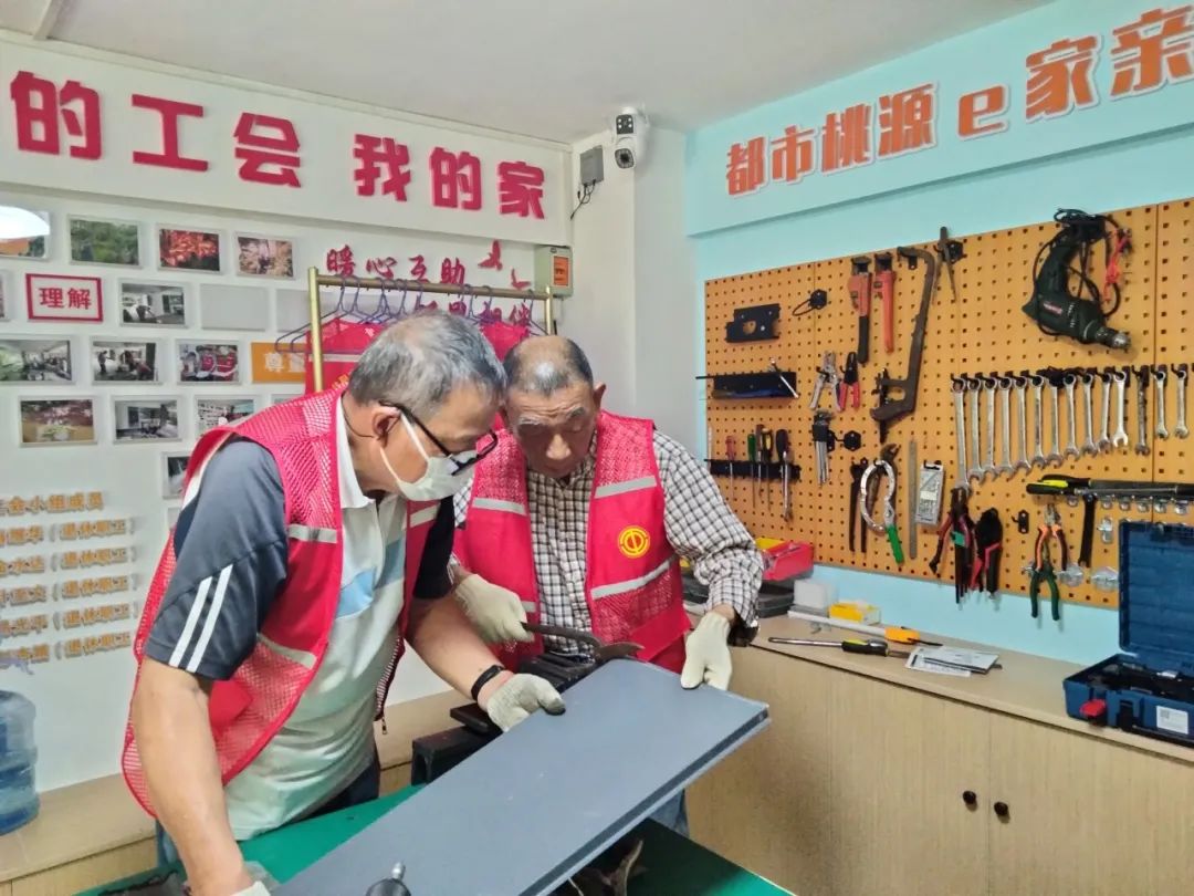 工具有了,谁来管理?怎么使用?工会小组公开征集维修达人、能工巧匠,很快退休职工踊跃报名,有人懂家电维修,有人懂机械常识,有人以前做钳工,就这样,小区暖邻维修互助队成立了。
