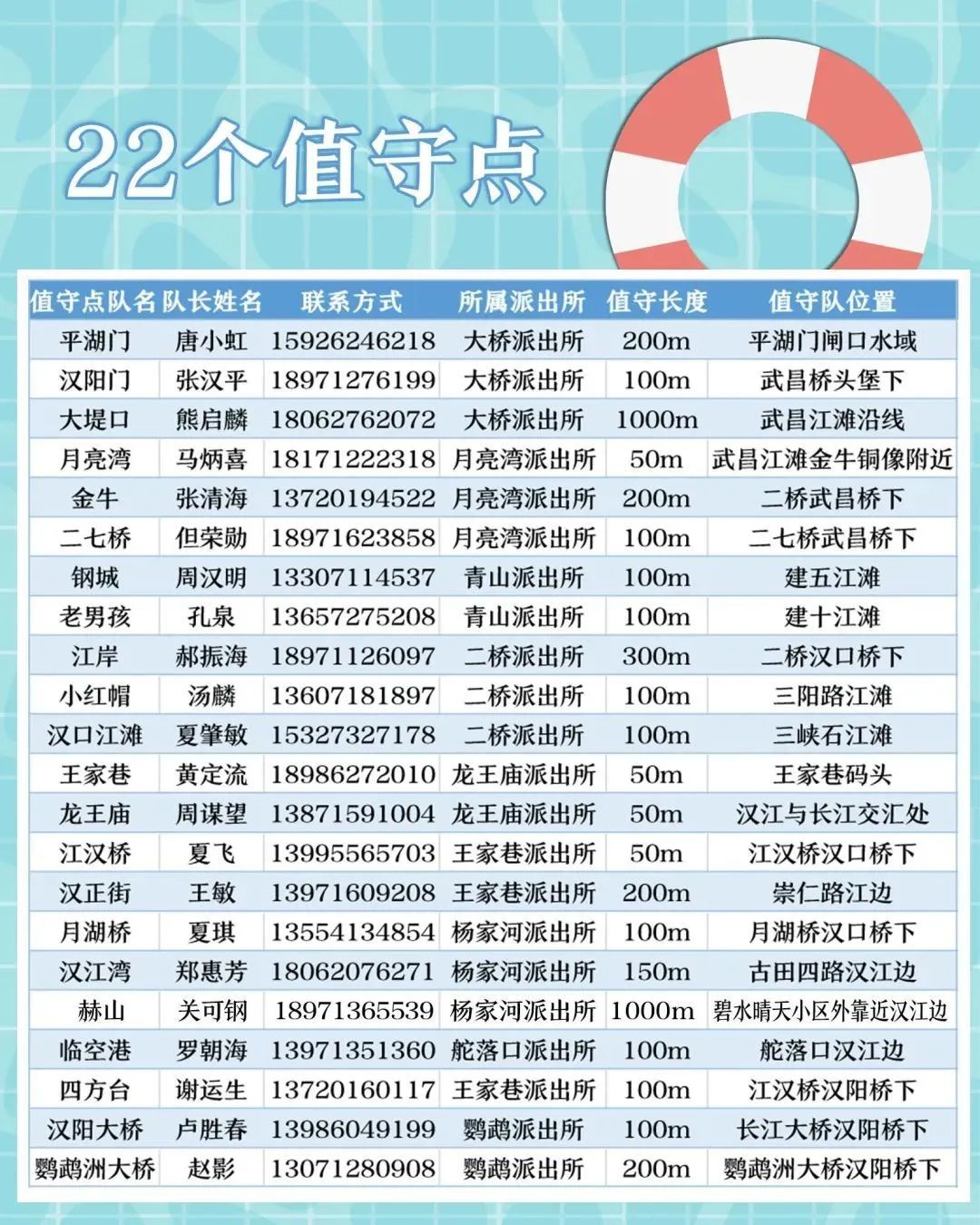▲22个“日常值守点”位置示意图及信息表。(图:长江日报)
