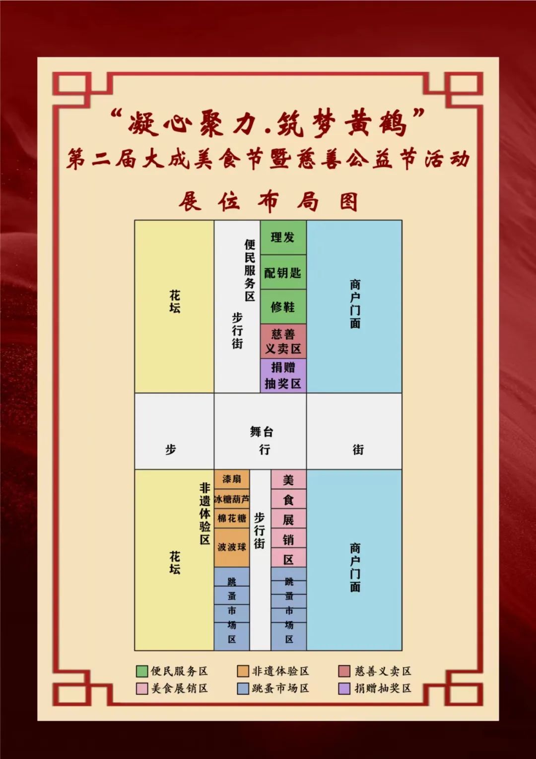 活动现场有文艺汇演区、便民服务区、慈善义卖区、跳蚤市场区、非遗体验区、慈善捐赠区、美食展销区。