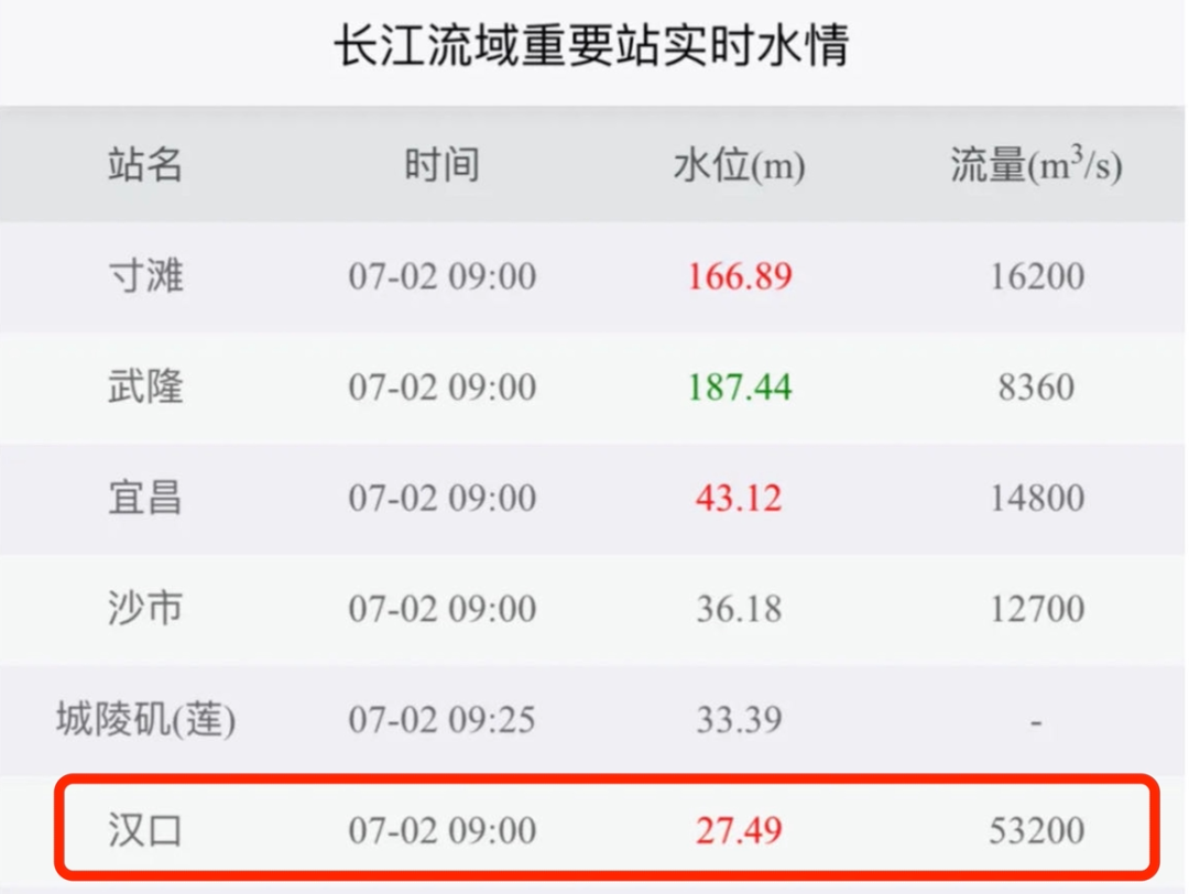 又经过一夜大雨,7月2日6时20分,水位上涨至27.44米,达到警戒水位。