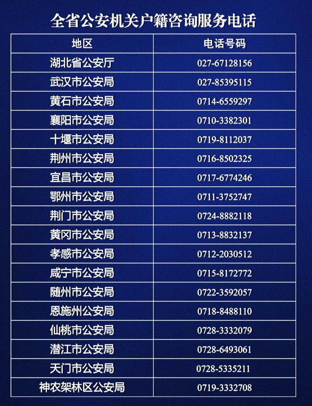 据湖北省公安厅7月2日公布消息,即日起,全省、市、县三级治安户政部门向全社会公开业务咨询服务电话。在工作时间内,湖北居民可拨打相应号码,湖北警方提供接听、答复群众办理户口、居民身份证、居住证等业务咨询。