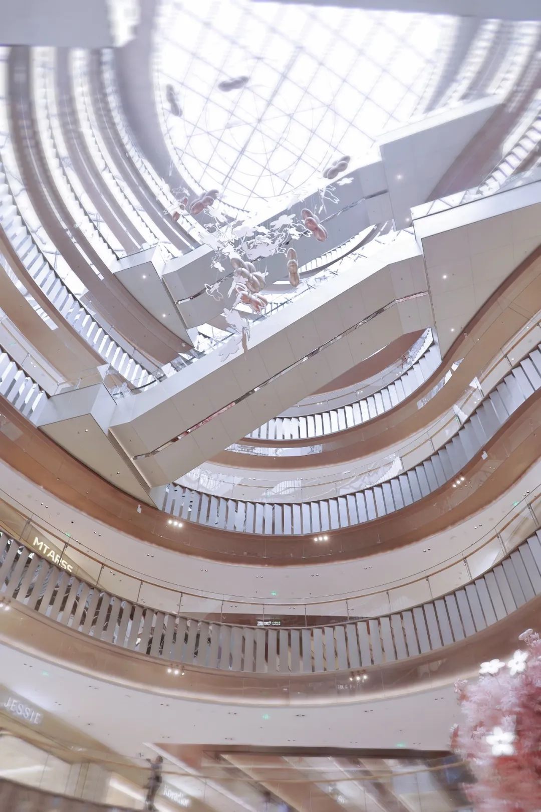 灵感来自武汉元素樱花,以及长江流域晨曦暮色中各种各样的生命,在商业空间内营造出充满惊奇、沉思和宁静的场景。