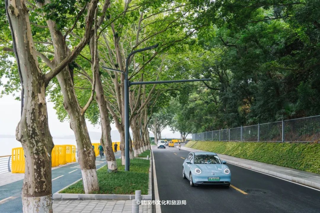 建议游客在汉街、金融街东湖中心等周边停车场停车,然后通过公交、骑行、步行等方式到达绿道。