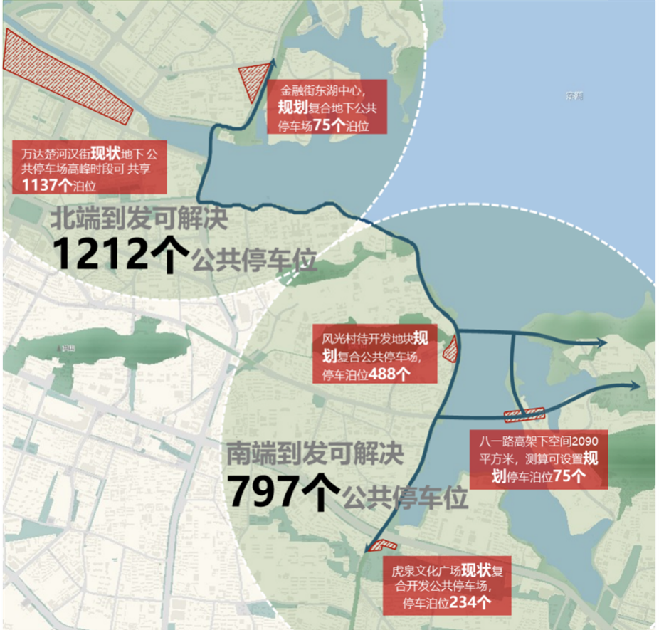 针对此问题,武汉市规划研究院注册城市规划师刘凯表示,东湖南路上,规划了一棵树驿站停车场,目前尚未建成。