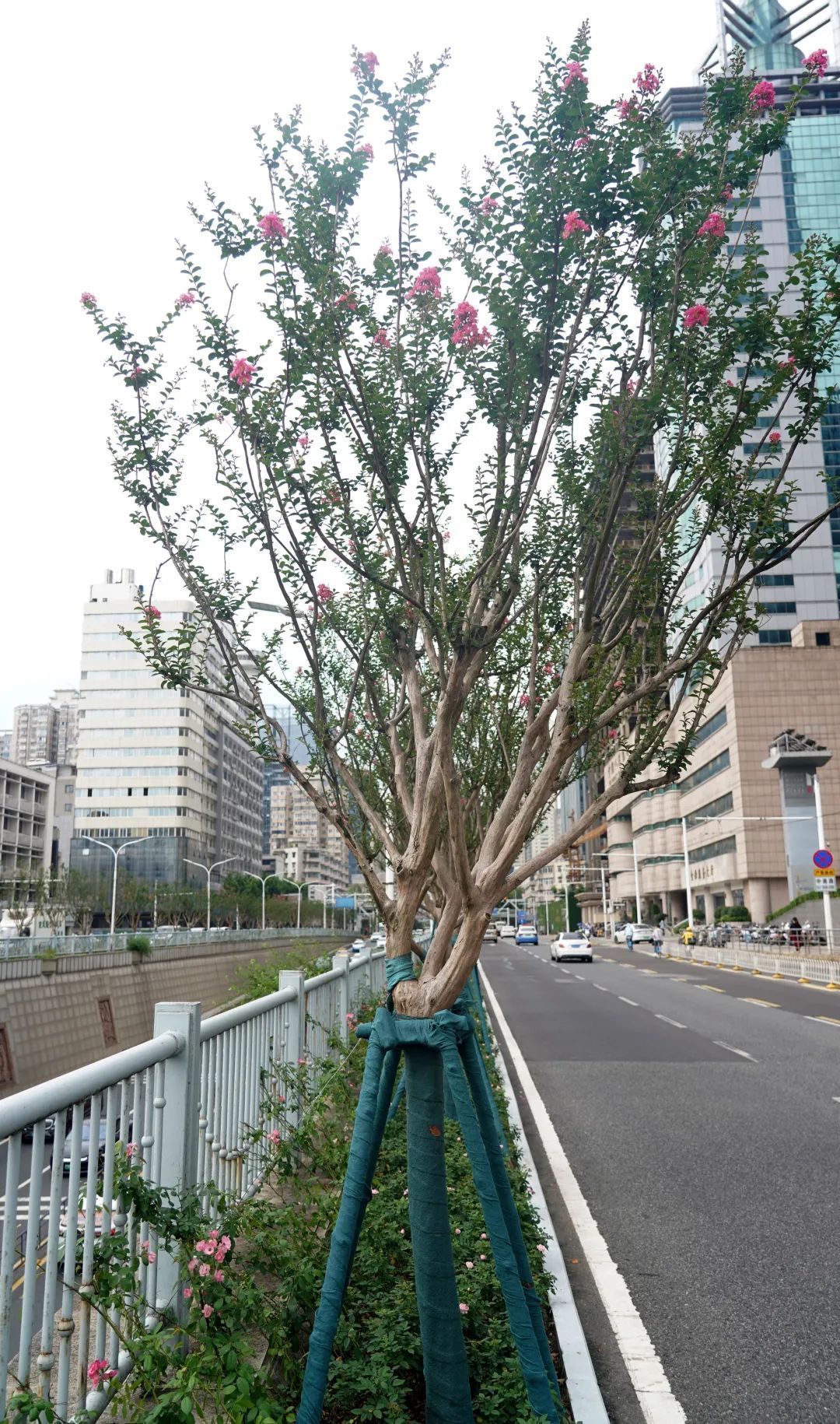 新栽的紫薇树还从洪山广场地下通道两端,沿着中南路两侧的绿化带一直延伸到武珞路路口,总共种了198株。