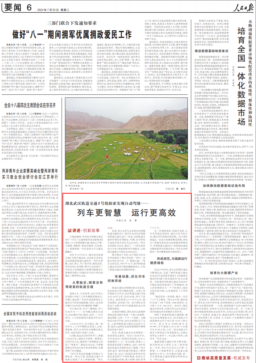 2021年12月26日,湖北武汉轨道交通5号线开通运营,这是武汉首条全自动驾驶的轨道交通列车。“列车从唤醒、启动、停止、车门的开闭、载客运营、列车回库以及休眠,都可以自动进行。”负责设计该线路的中铁第四勘察设计院集团有限公司通信信号设计研究院原副总工程师郑生全说。