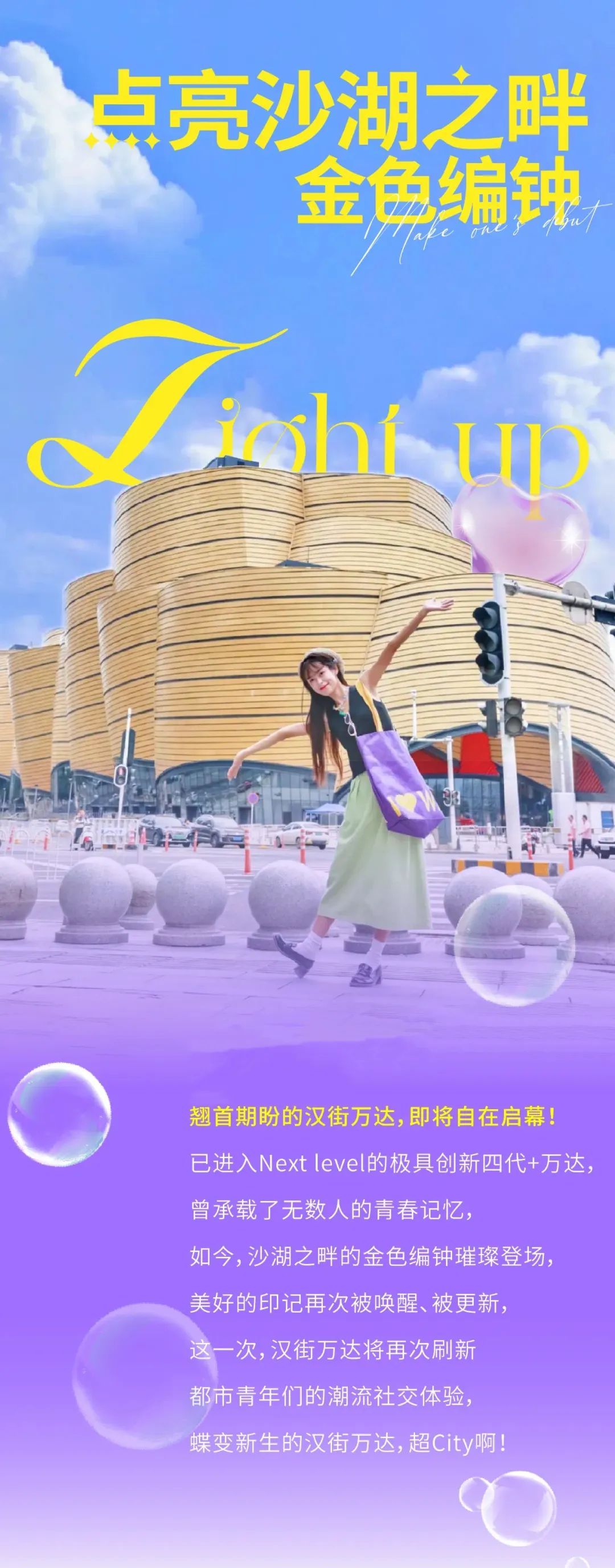 就在本月26日,汉街万达自在启幕,悦己青年全新生活理想地卓然呈现。紧邻风景秀丽的沙湖公园,打造一线滨湖商业文化中心,极具创新的“四代+”万达,再次惊艳。