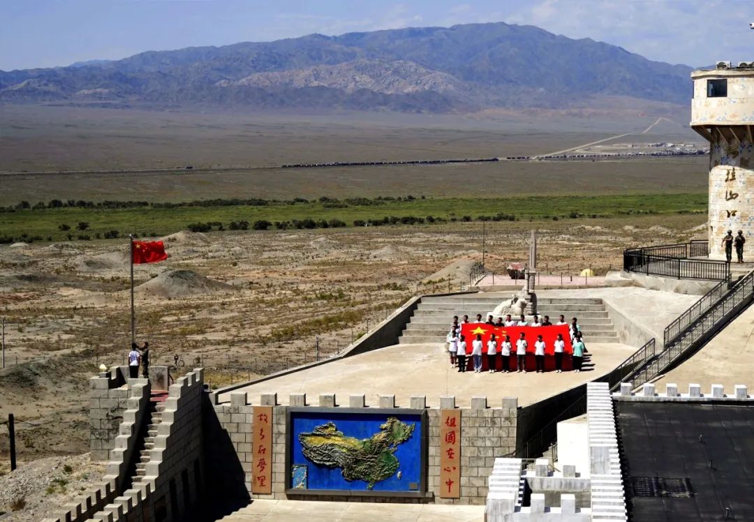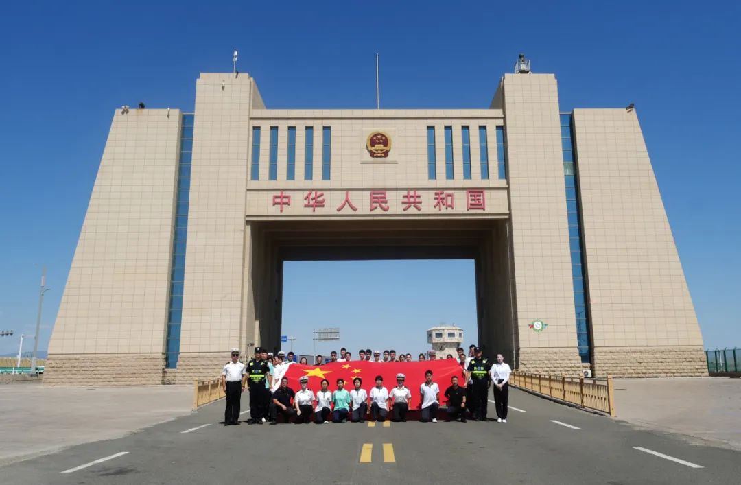 东湖中学多民族国旗护卫队护送学校珍藏的“天安门国旗”,来到阿拉山口口岸,参观了解口岸历史沿革、基本情况、作用地位等思政知识和边防哨所官兵戍边的感人故事。两地学生与口岸工作人员、哨所官兵共同升起五星红旗,庄严宣誓:“守护好国旗,守护好国门!”在我国这一重要的向西口岸,各族学子们上了一节生动又震撼的爱国主义思政课,有力地鼓舞了学生们的爱国热情。