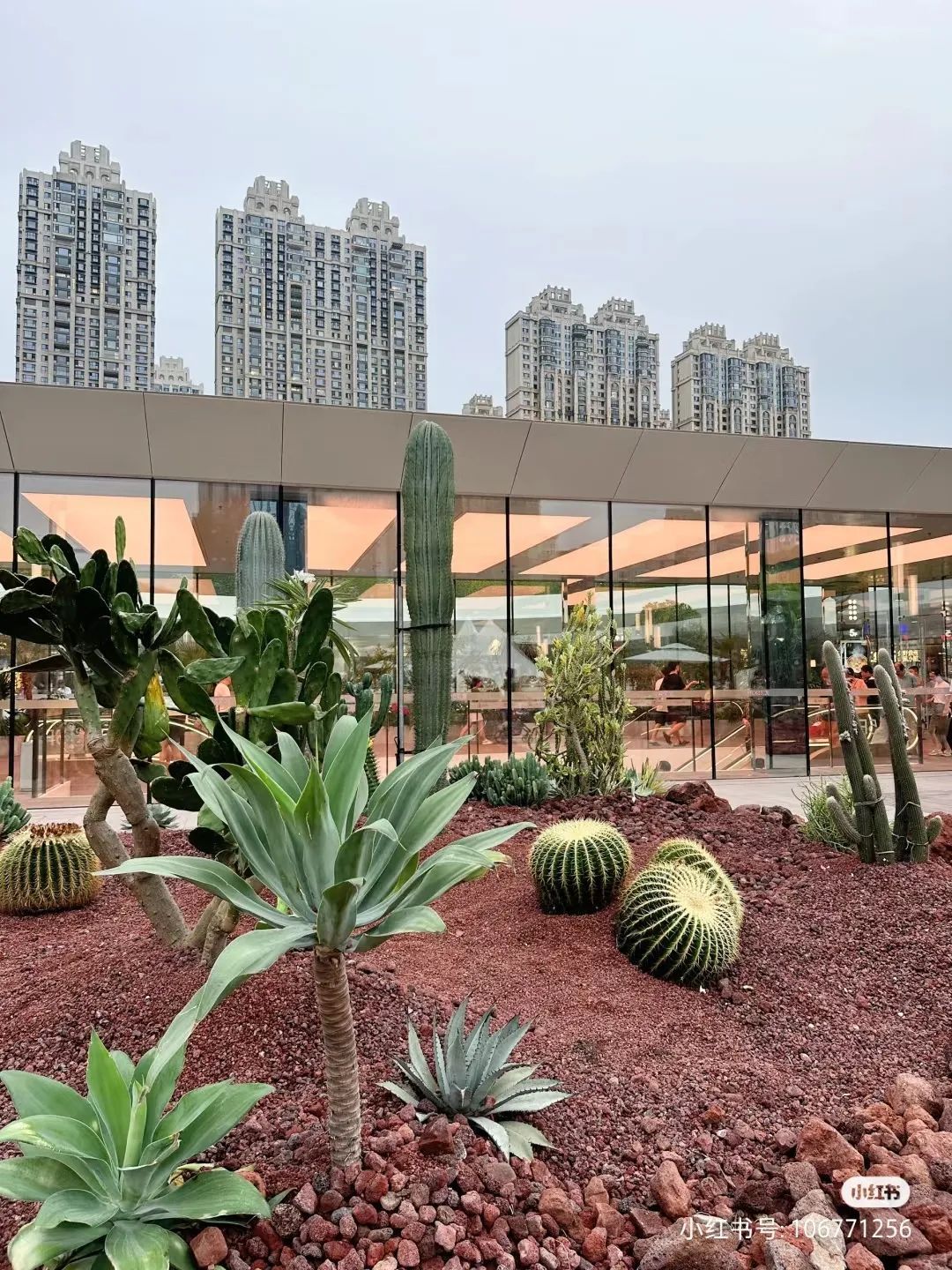 坐上电梯,直达顶层花园,扑面而来热带沙漠气息,乱石耸立、红沙飞扬,仙人掌肆意生长,露营帐篷如星河点缀,坐在露营椅上喝杯咖啡,让人直呼“这太‘city’啦!”