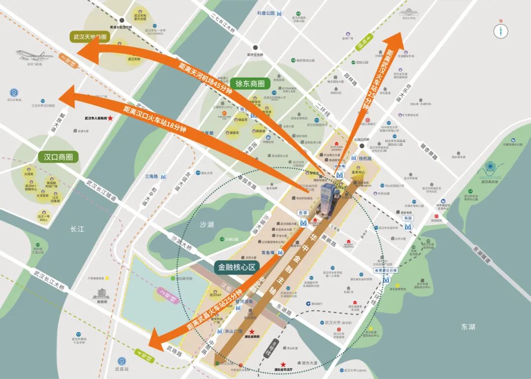 两轴:占据城市交通主轴——中北路、紧邻武汉大道,扼守城市交通枢纽