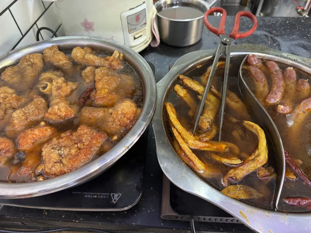 2009年以后,店门口就架起了油锅,炸起了面窝,配着汤吃,外焦内软,别有风味。2015年的时候,老板又把老家的猪蹄粉带到了武汉。猪蹄经过油炸后卤制而成,金灿灿的,无比诱人,咬一口,软而不烂,肥而不腻,满满的胶原蛋白,一经亮相就虏获了无数人的胃。