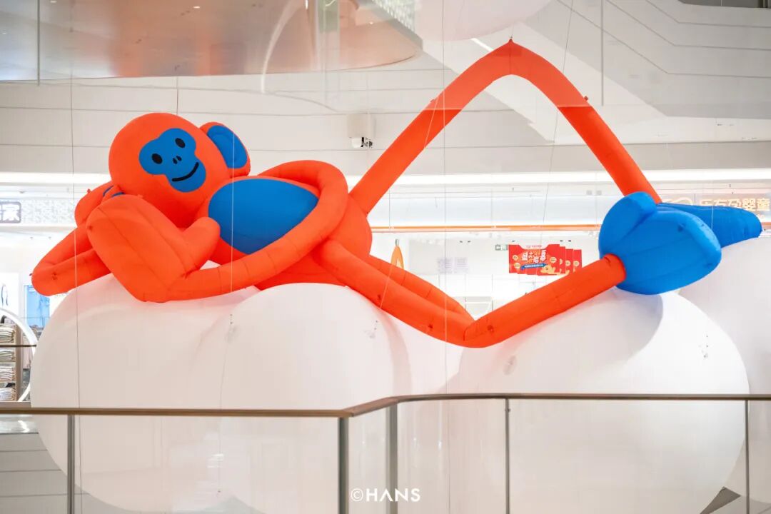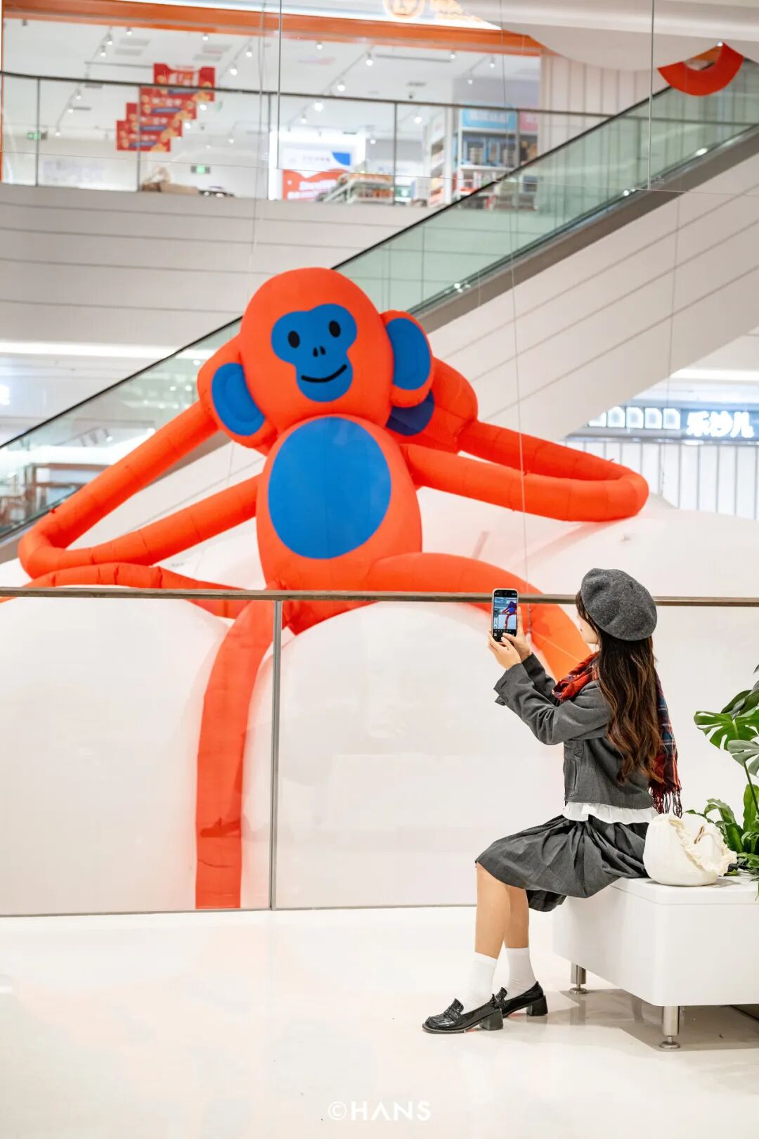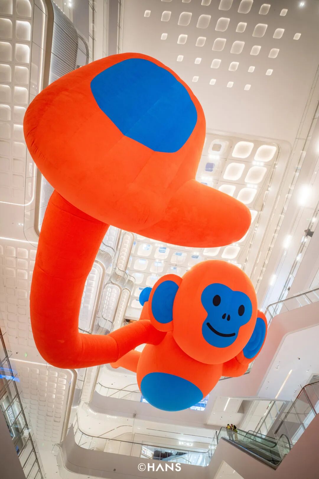 这个猴子叫hoho,是著名公共艺术家弗洛伦泰因·霍夫曼派来武汉亲橙万象汇的。火遍全球的大黄鸭,也是霍夫曼的崽。