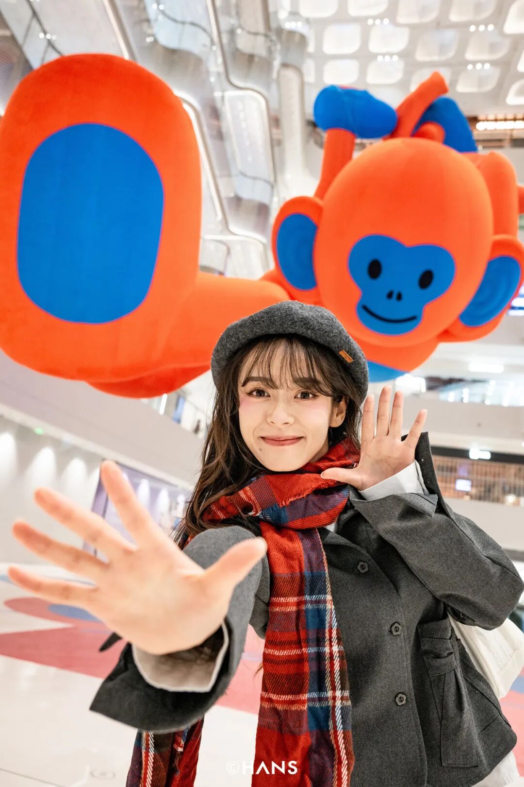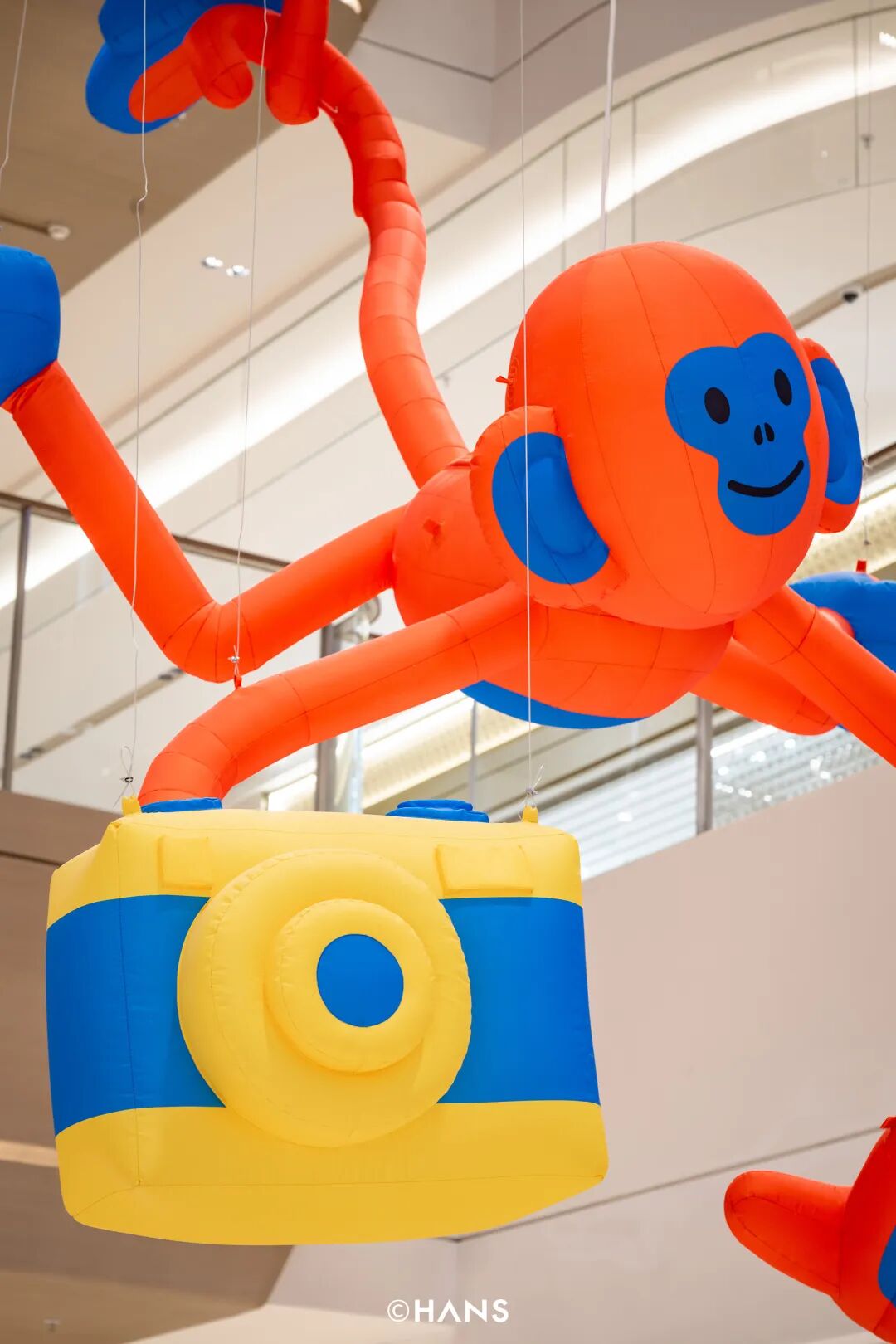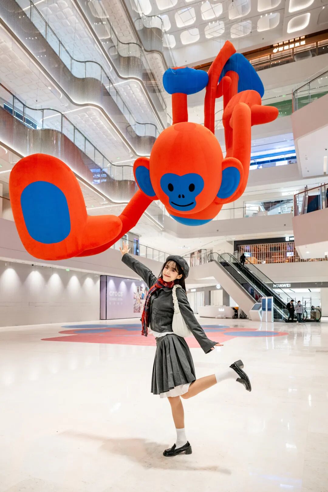 这个猴子叫hoho,是著名公共艺术家弗洛伦泰因·霍夫曼派来武汉亲橙万象汇的。火遍全球的大黄鸭,也是霍夫曼的崽。