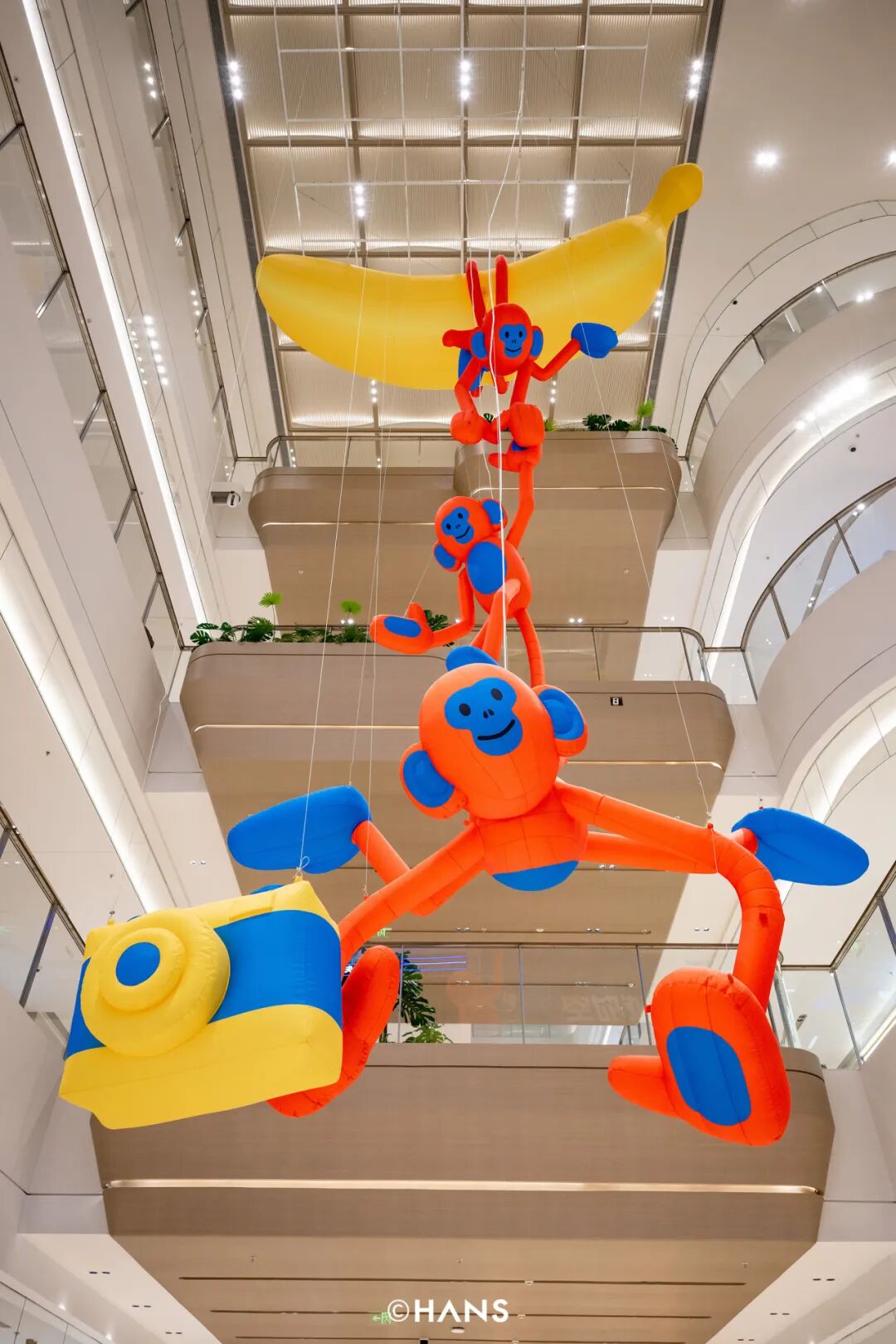 一楼中庭,长达20米的hoho从天而降,身姿灵动,手掌轻轻探向我,等待着一个击掌的回应。