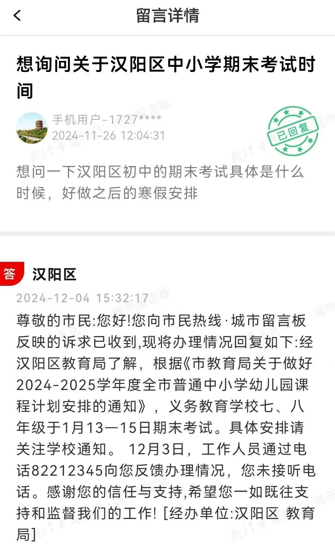 ▲有家长在武汉城市留言板询问相关问题