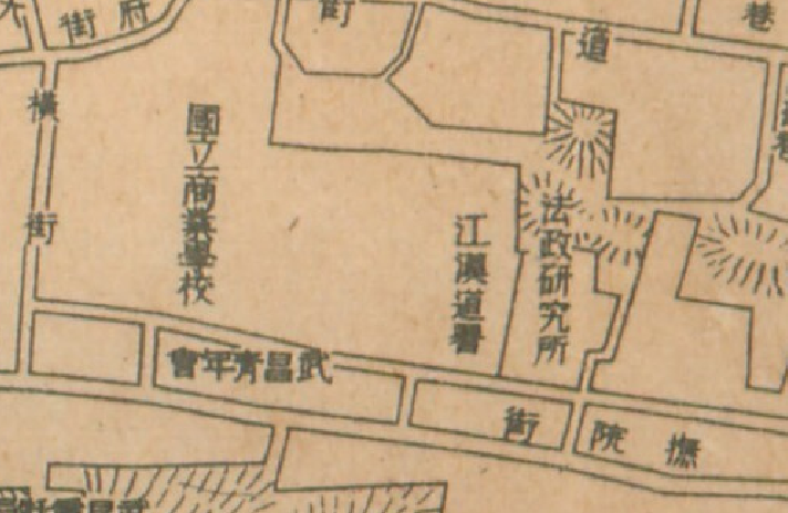 清代三道街上的盐法道在管辖湖北全省盐政的同时,兼理省会驻地政务。咸丰四年(1854)湖广总督府的房屋失火被毁,总督府曾临时迁至武昌三道街盐道衙门。民国初期行政体制中,在省与县之间设立分道,1914年,湖北被划分成江汉道、襄阳道、荆南道,原盐法道署旧址成为江汉道尹公署。