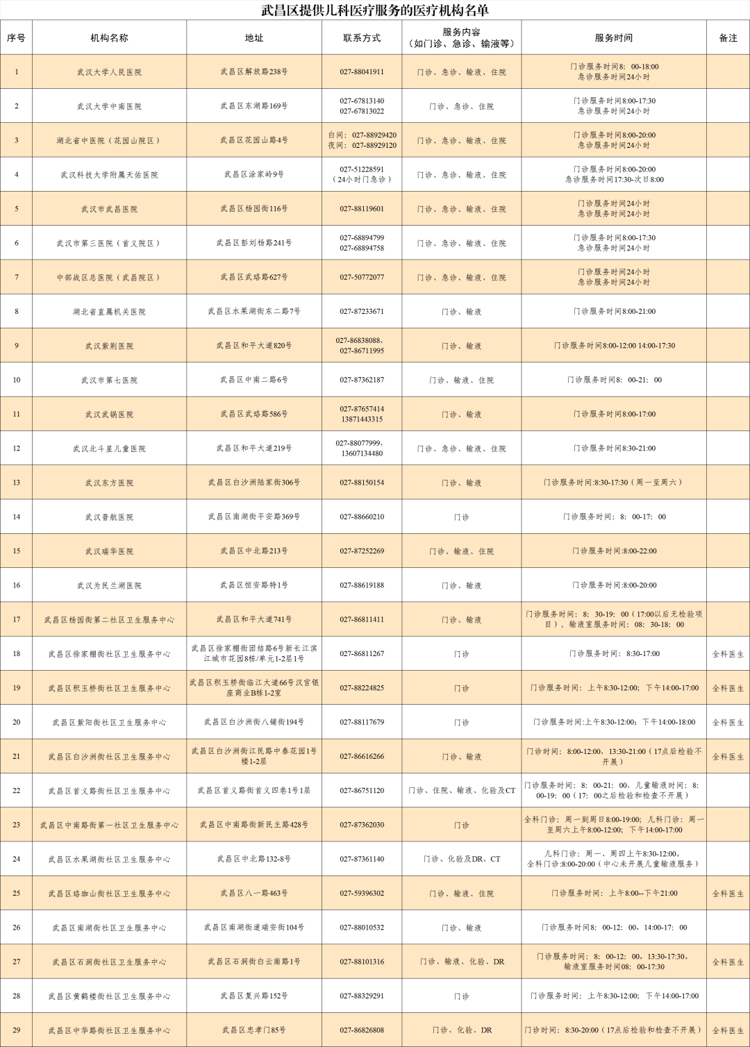 为更好满足辖区儿童就医需求,武昌区共29家医疗机构提供儿科医疗服务,具体信息公示见武昌区提供儿科医疗服务的医疗机构名单(附本文后)