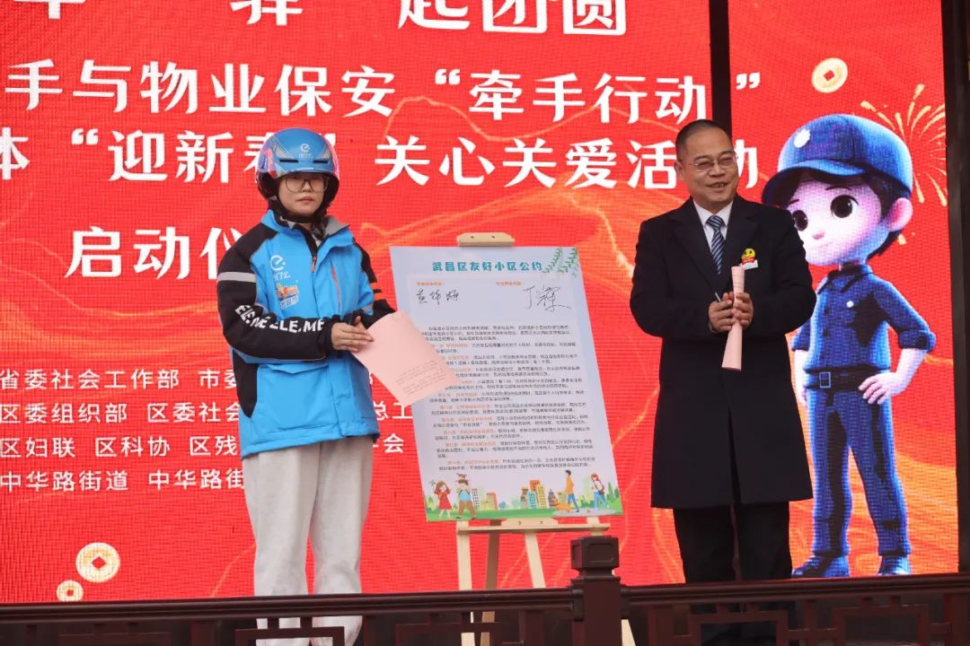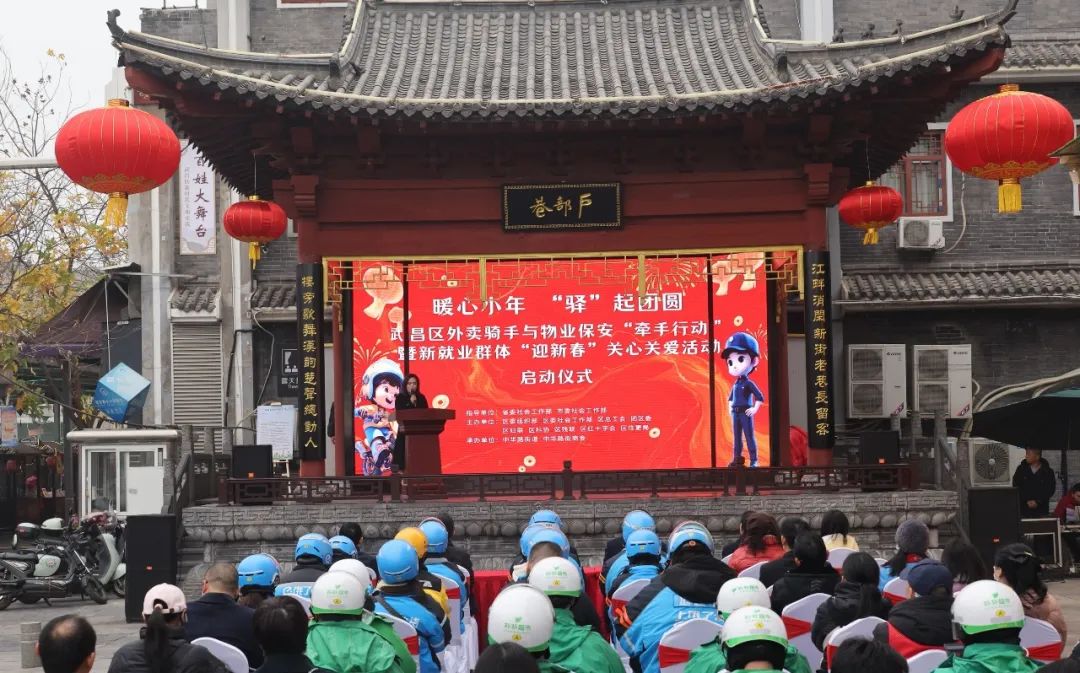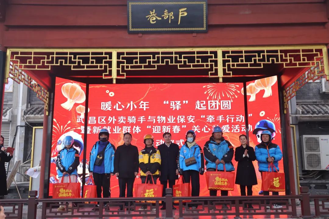画糖画、剪窗花,笔下春联行云流水,张灯结彩歌舞迎春,便民服务如火如荼。冬日渐寒,小年暖暖。1月23日上午,一场由武昌区委组织部、区委社会工作部联合区总工会等群团部门和区住更局主办的外卖骑手与物业保安的“牵手行动”在中华路街道户部巷社区拉开帷幕。