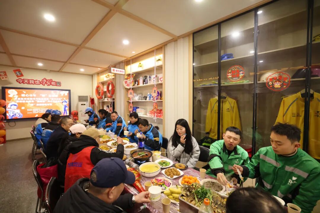 一桌年夜饭、围炉话新春。新就业群体、“友好小区”物业、商会代表在社区新就业服务驿站围坐一堂,品味由街道商会提供的武汉特色年饭,现场征集新年“微心愿”,分享工作生活。“平时忙于奔波,今年也不打算回家,没想到在驿站还能吃上一口热乎饭,我的心里暖暖的”一位骑手说道。