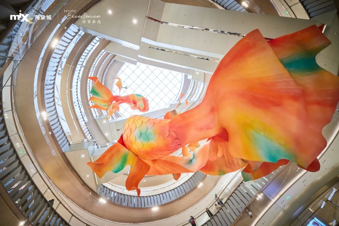 拍照晒朋友圈也是市民逛街必不可少的环节。为此,各大商业体提前准备了不少物料,在显眼处搭建充满视觉效果的“打卡点”。在武昌万象城一楼,长江日报记者看到,数个大大小小的圆柱形“鱼缸”内,数百只万尾锦鲤正惬意地游动着。爱好摄影的市民端着专业摄像机,为它们拍照。