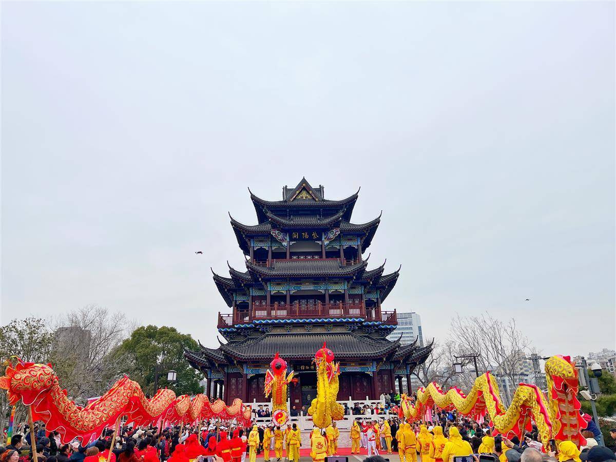 游园会首日,紫阳公园化身“民俗大观园”。猜灯谜区人头攒动,百余盏花灯悬挂着融合武昌历史与婚俗新风的趣味谜题,游客争相竞答,笑声此起彼伏。非遗展区汇聚高龙、滚龙、汉剧等传统技艺,国家级非遗“高龙”表演队以竖式舞法展现龙腾九天的磅礴气势,汉剧演员身着华服演绎戏曲伴舞,古今交融的视听盛宴令观众流连忘返。