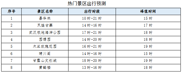景区方面,当晚,武汉园博园、武汉极地海洋公园、木兰玫瑰花园、甘露山文创城等景区也将迎来大量游客,归元寺、古德寺等传统景点周边可能出现出行人流车流集中的情况。