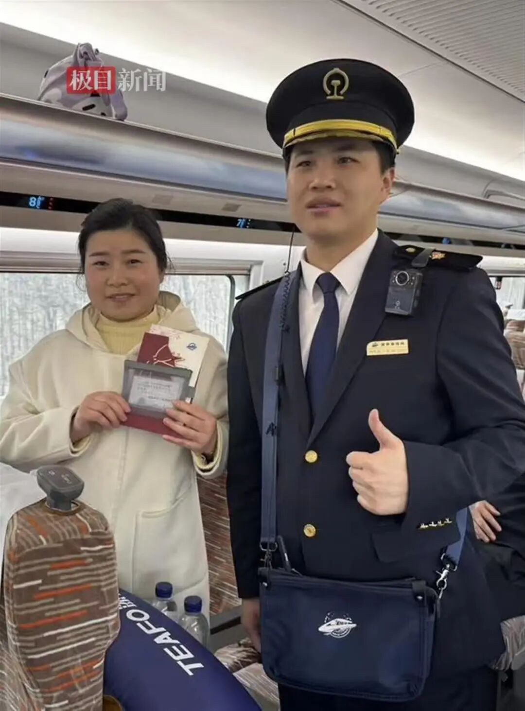 列车工作人员为王亚娟送来感谢信