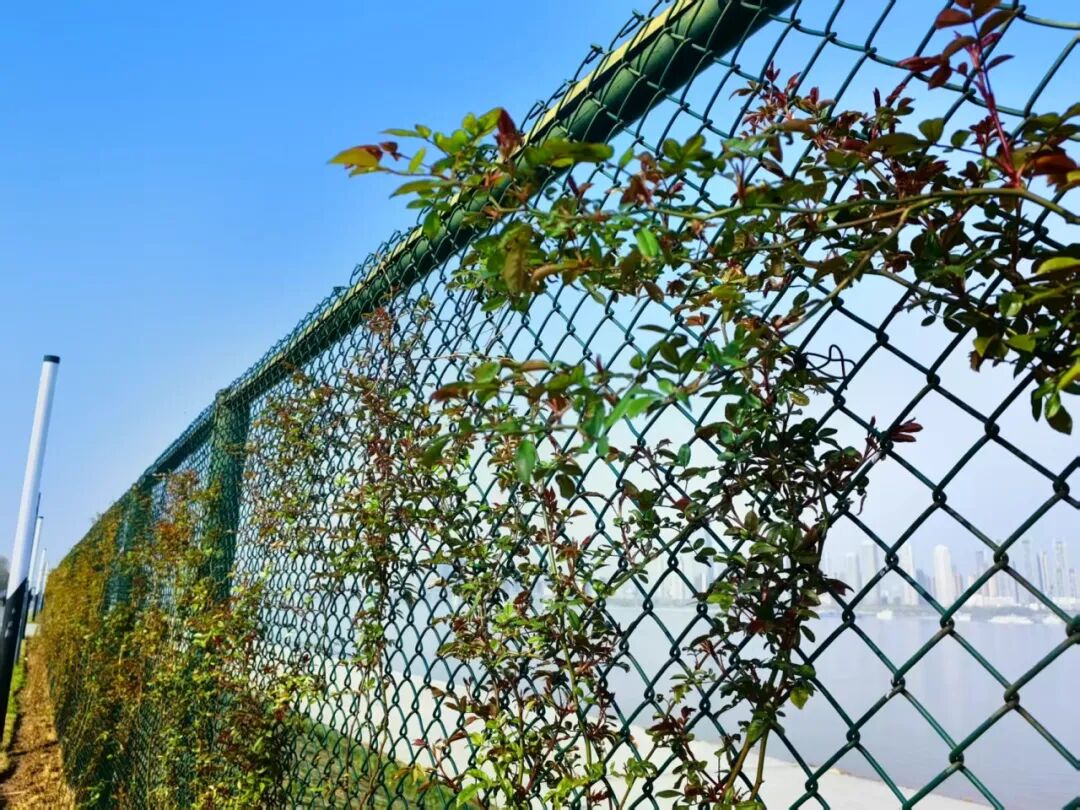▲江滩五期临江新种植木香爬满围网