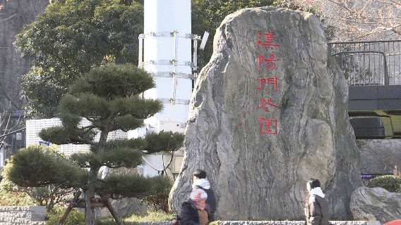 汉阳门花园的主入口位于临江大道与民主路户部巷的交汇处。入口处,仿古城墙形状的老城墙,回字形的小景巧妙地将武昌古城老水门的意象化形象呈现于众人面前,瞬间勾起了人们对武昌“老九门”的回忆。