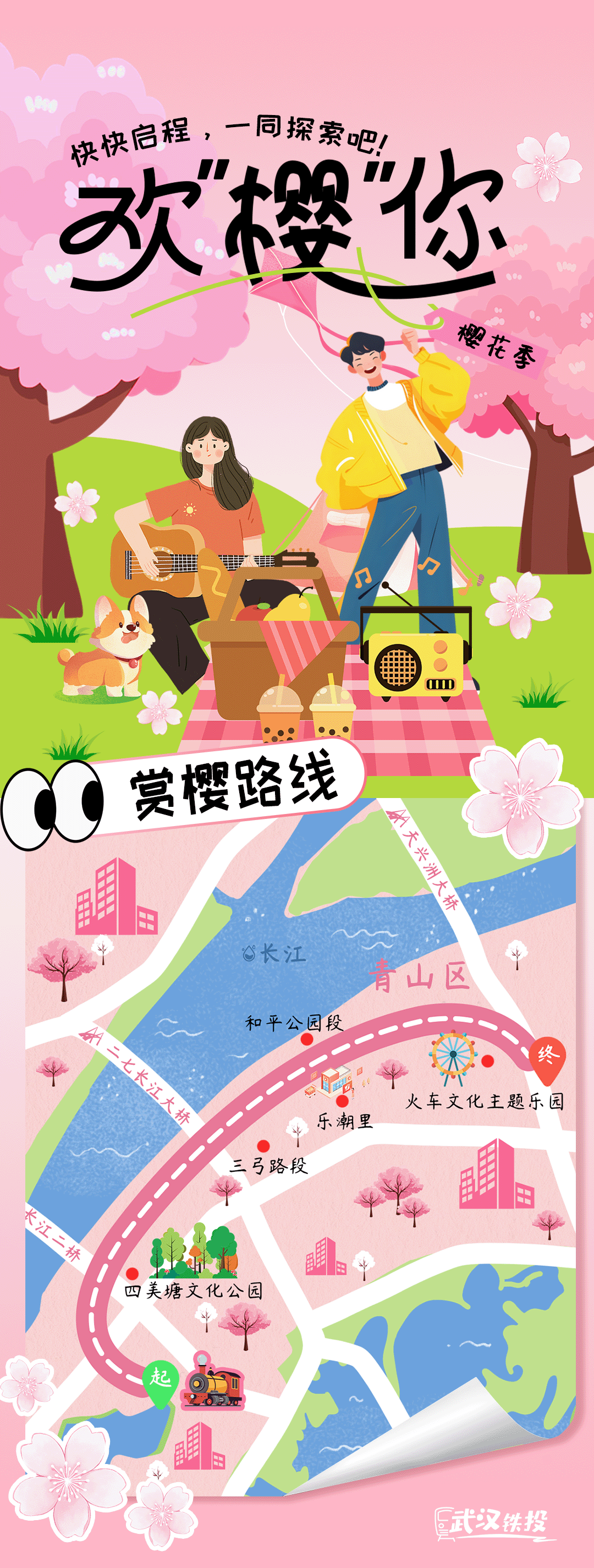 阳春三月,樱花如约绽放绘制出一幅幅粉色的梦境由武汉城投铁投公司负责建设打造的武昌生态文化长廊沿线樱花已陆续盛开????????????愿您在这绚烂的花海中尽情沉醉于樱花的温柔与美丽我们精心准备了一份「武昌生态文化长廊赏樱指南」包含赏樱点位/交通/周边景点/商圈全方位攻略带你解锁春日限定美好快快启程,一同探索吧!