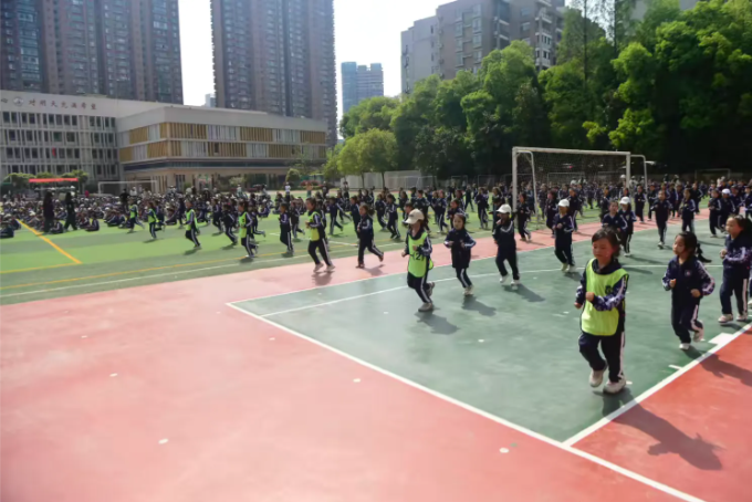 四月芳菲,晨光煦暖;童声笑语,步履铿锵。为深入贯彻素质教育理念,活跃校园文化氛围,增强学生体质,锤炼顽强意志,培育团队协作精神,武汉市粮道街中学小学部于2025年4月3日隆重举行'童心跃动,活力飞扬'主题跑操比赛。绿茵场上,同学们以整齐的队列、昂扬的姿态,展现了新时代少年朝气蓬勃的精神风貌。
