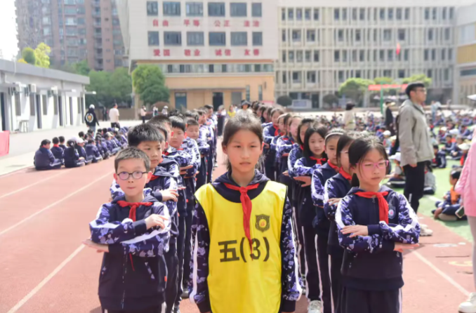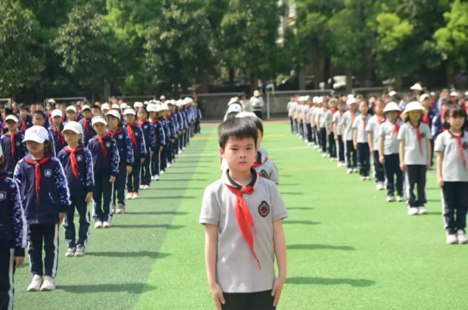 晨光中,列队静候的学子们目光如炬,稚嫩的脸庞写满期待。他们挺直腰背,眼神专注地凝视前方,清澈的眼眸里跃动着兴奋的火花,仿佛在无声诉说着对即将开始的活动的无限憧憬。
