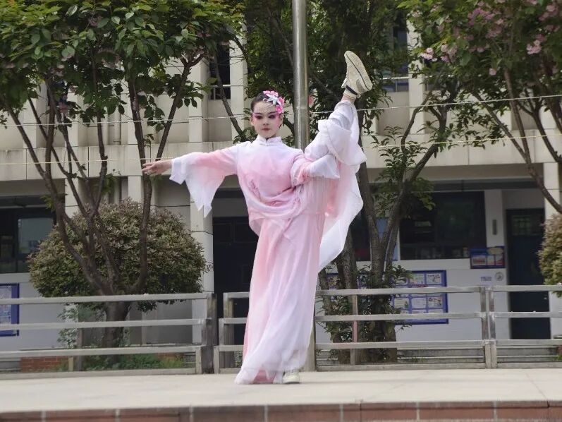 4月7日,武汉市粮道街中学小学部604班的同学在升旗仪式上带来了一场别开生面的文化艺术展演活动,学生们以创意十足的《京韵街潮》节目惊艳全场,将传统京剧与动感街舞巧妙融合,用青春活力诠释传统文化的时代魅力。这场跨界演出不仅展现了学校在传统文化传承中的创新探索,更成为“双减”政策下校园美育成果的生动缩影。