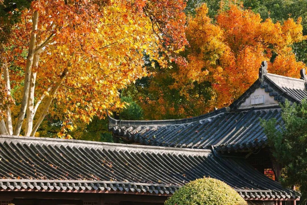 ▷ 秋:枫叶把琉璃瓦染成琥珀色,踩着青石板听一场红叶雨。