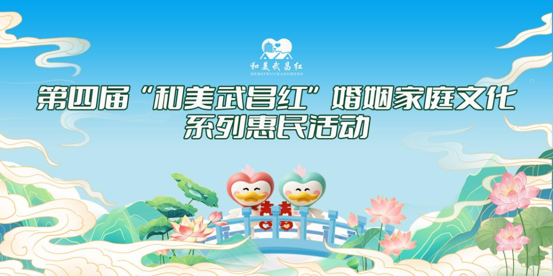 这个五月,武昌区民政局以文化为笔,以幸福为墨,倾力打造第四届“和美武昌红”婚姻家庭文化系列惠民活动,5月20日—5月30日,“和和美美结婚鸭”IP萌宠邀您共赴浪漫之约!让我们相约武昌区婚姻登记处,共同见证爱情最美的模样!