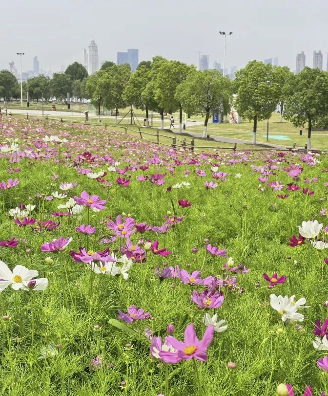 这片花海由武昌区河道堤防管理所精心播种。江滩工作人员薛刚说,为了让花期更持久,他们特意将花籽分成三批播撒。眼下5月至6月正是第一波盛放期;7、8月花儿可能会“偷个懒”,进入休眠期;等到9、10月再度绽放。算下来,这片花海能陪伴市民近半年。