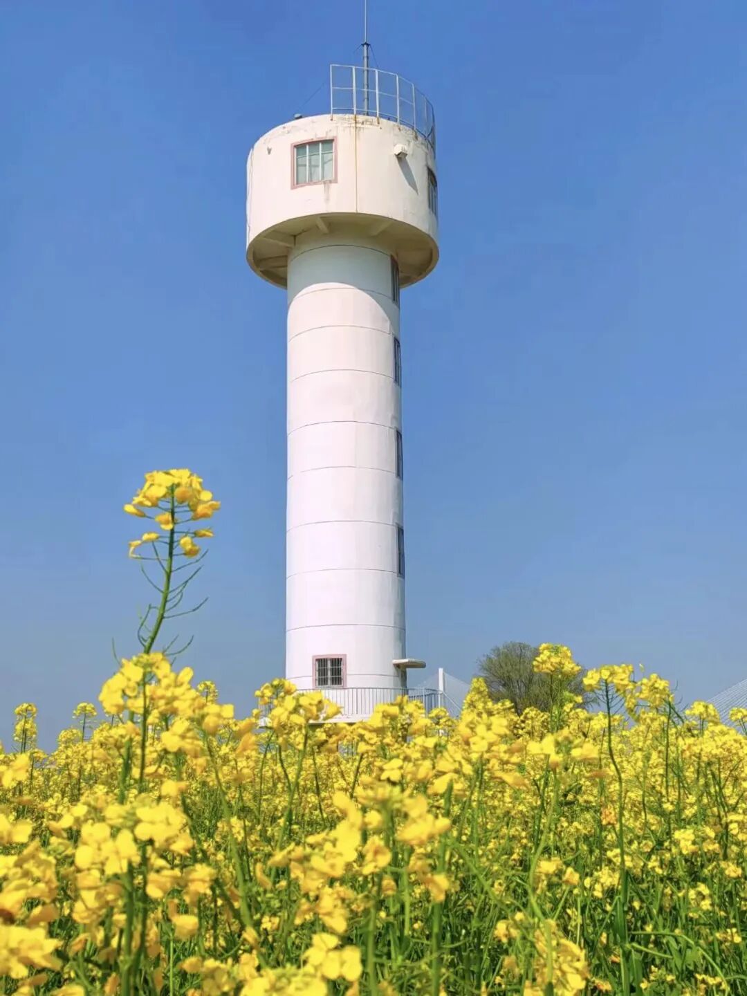 白塔与孤独的树相依