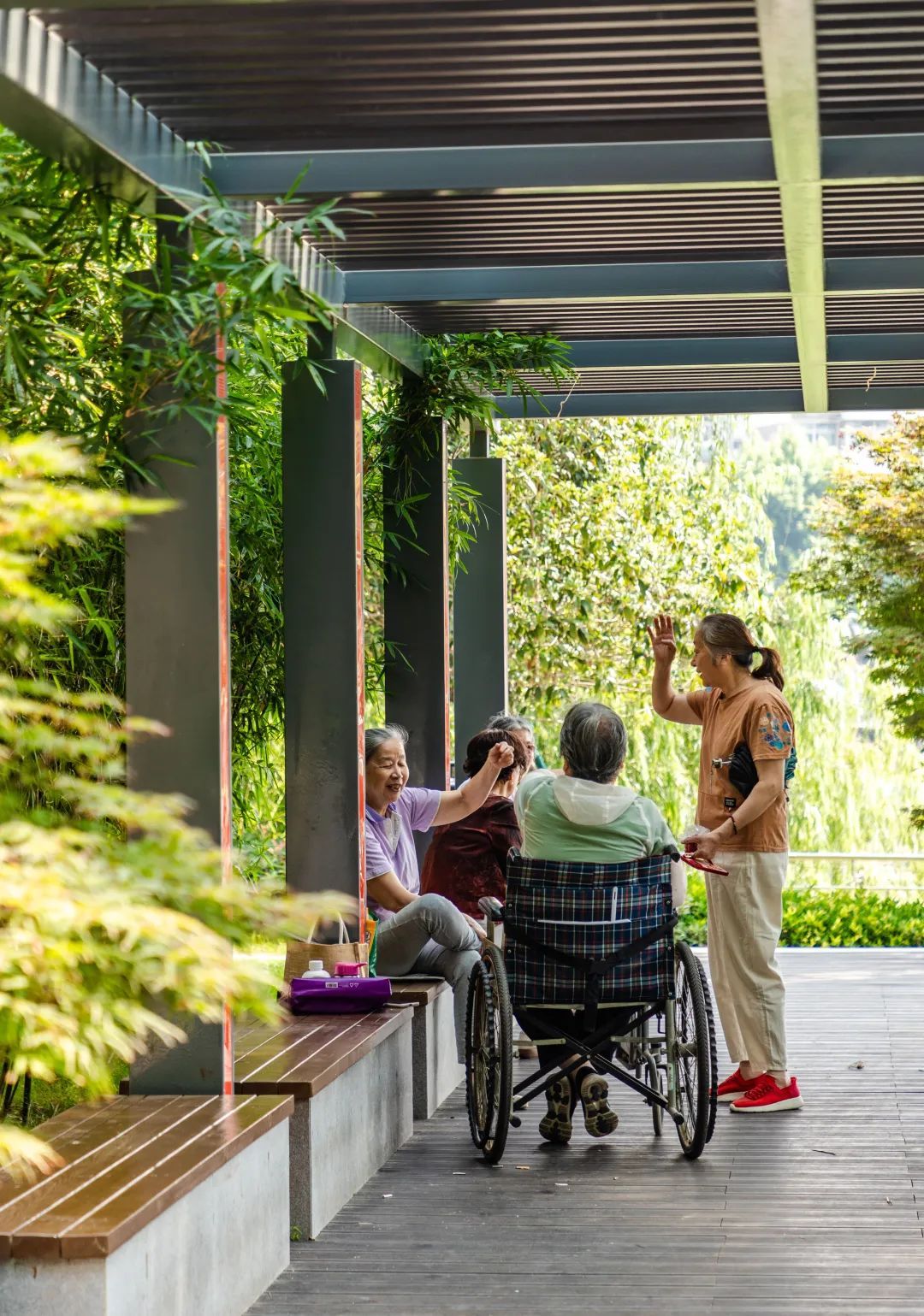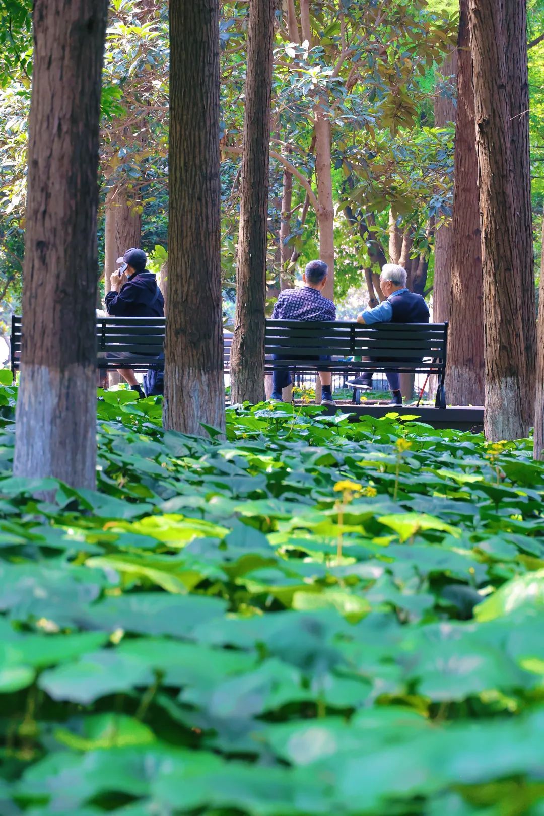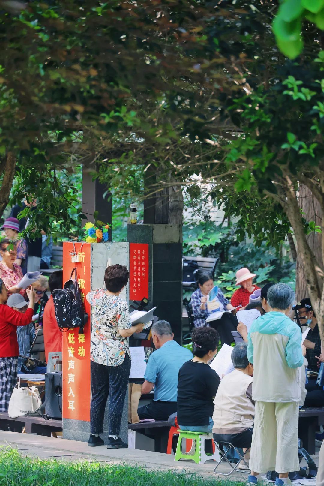 即使是在夏天,周边市民闲暇时也常来此处纳凉。繁茂树木之下,爹爹婆婆们在吹拉弹唱、下棋打牌、散步锻炼,一群老年人也成为了这里一道亮丽的风景线。