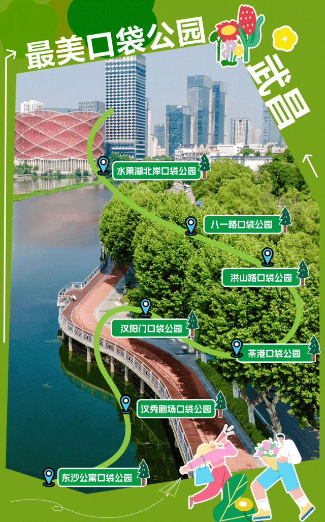 秉承“人民城市为人民”理念,武昌区始终将口袋公园建设作为城市更新的民生切口,通过优化城市功能、提升品质与活力推进城市微更新。建设过程中采用因地制宜、见缝插绿、一点一策的方式,重点改造城市边角料、闲置空地及杂乱小游园,实现空间重塑与景观升级。自启动省级“最美口袋公园”创建以来,汉秀剧场、洪山路、汉阳门、八一路等7处口袋公园,相继斩获省级“最美口袋公园”称号,形成示范效应。