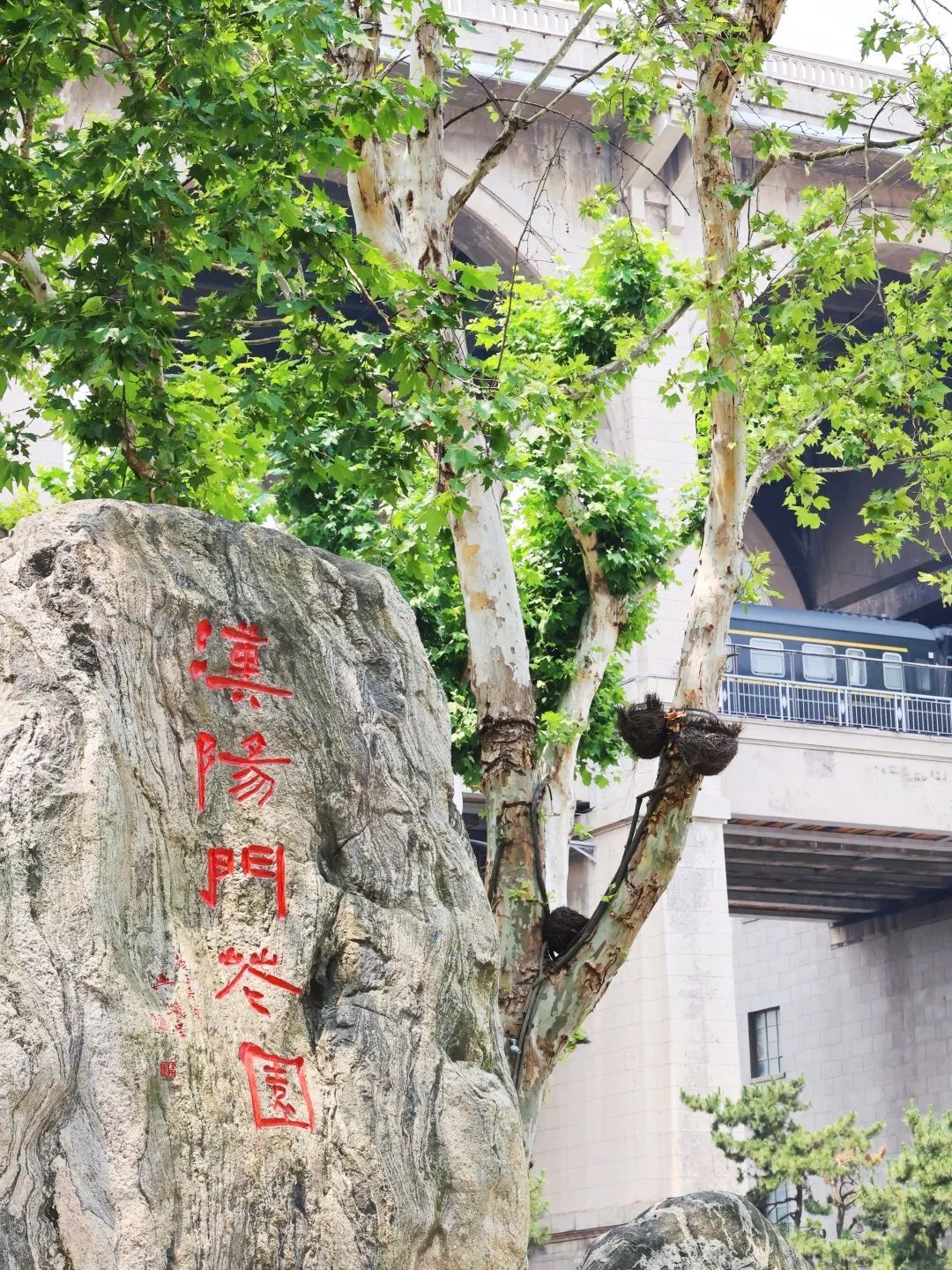 武汉长江大桥下的「汉阳门花园」,有闹中取静之意,满满的老武汉气息,它向过往游客讲述着在武昌揽江、登楼、游城、观景的美好体验。