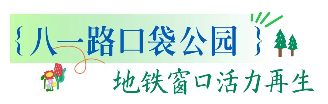 「八一路口袋公园」位于洪山广场南侧,地铁洪山广场站B3出口旁。