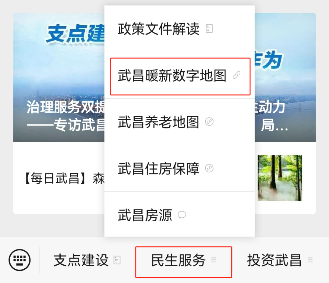 ③点击下方【民生服务】—【武昌暖新数字地图】即可查看
