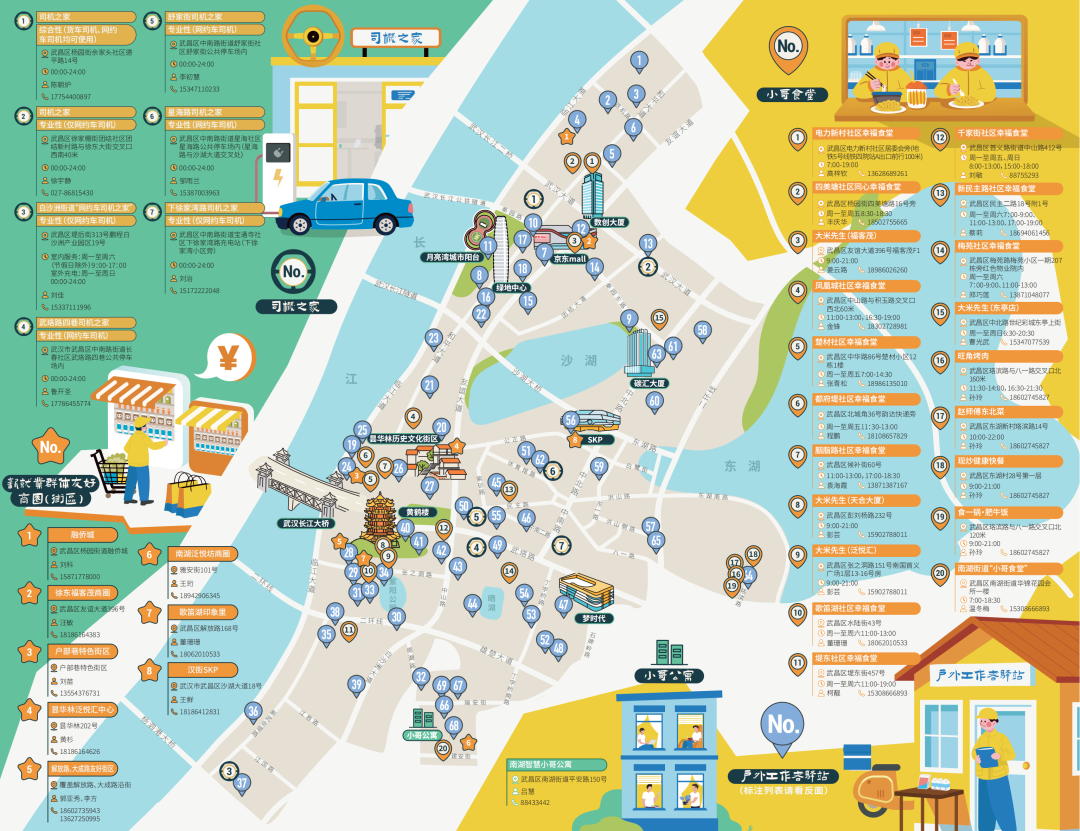 设有外卖集中取餐点,集中临时停车区,集中充电或换电站,帮助小哥节省配送时间。爱心商户还为新就业群体提供“医、食、驻、行、娱”等多方位优惠和服务。