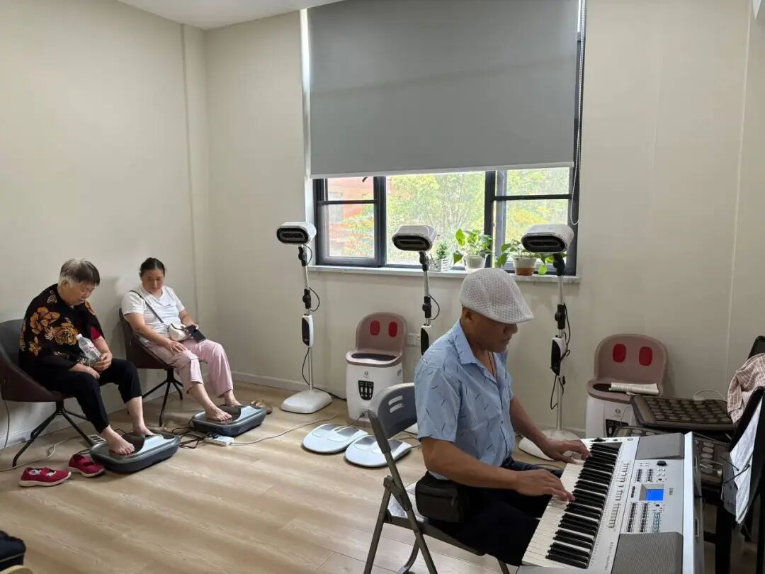 南湖街风华天城社区、积玉桥街凤凰城社区、粮道街东龙社区积极链接社区医生,开展免费义诊、量血压等服务,关爱身体健康;黄鹤楼街花堤社区纳凉点设置按摩椅、紫阳街歌笛湖社区配备足底按摩器,舒缓身体疲惫。