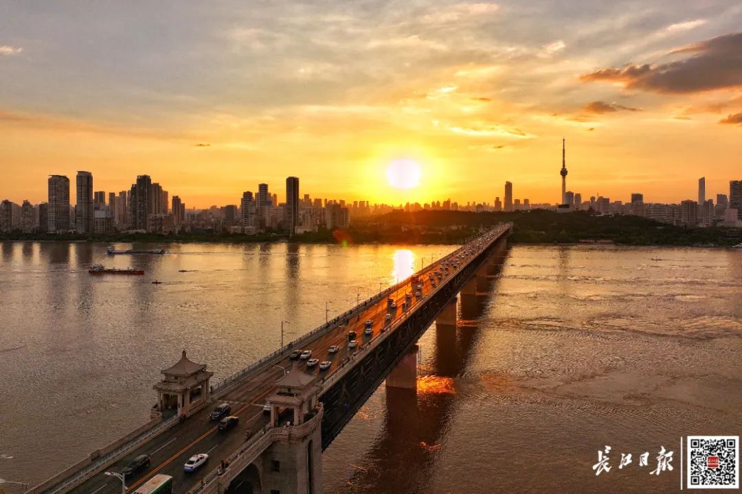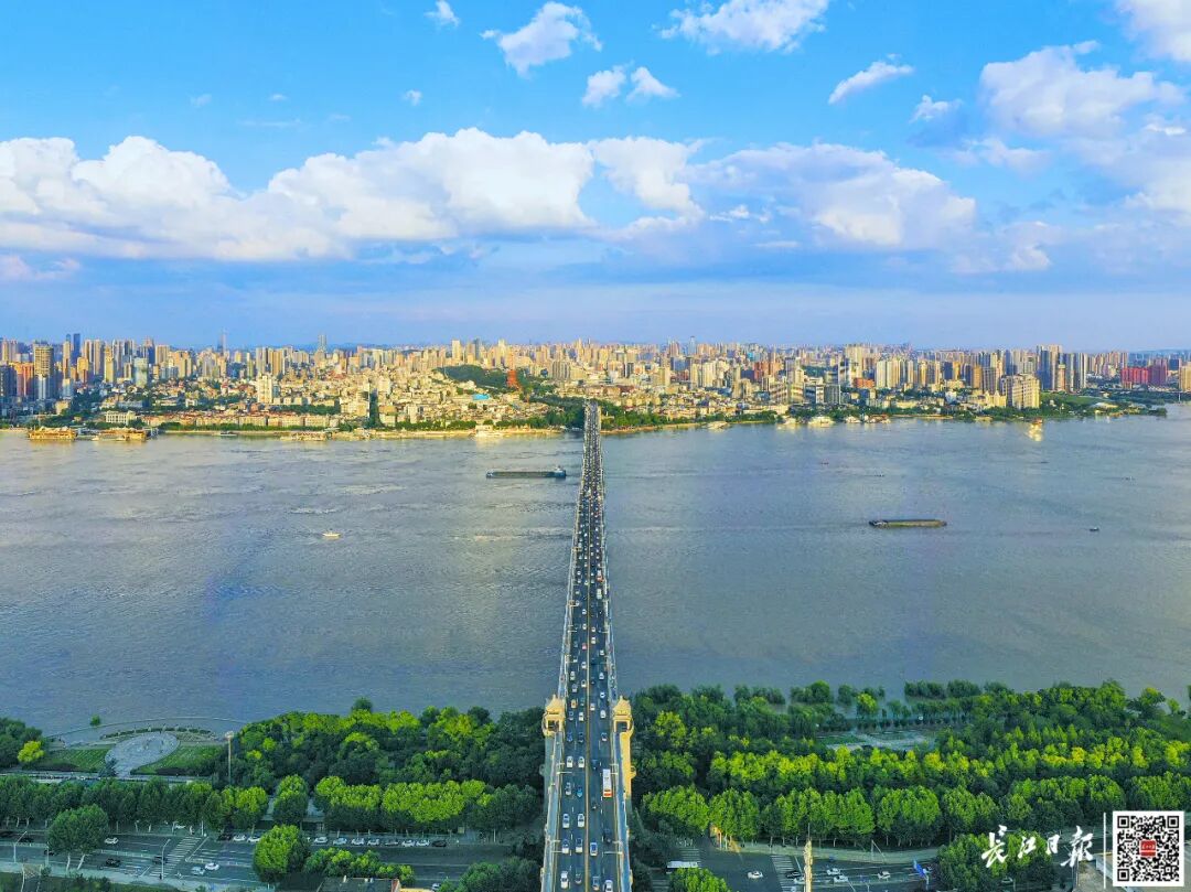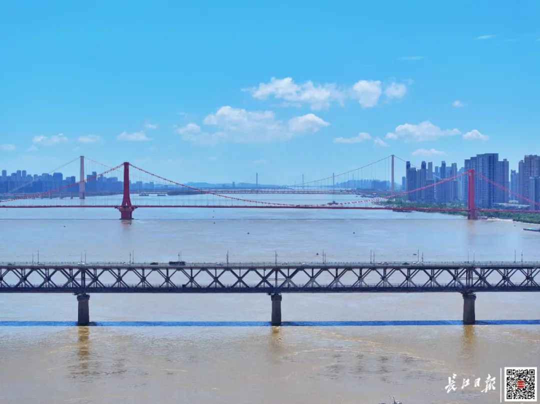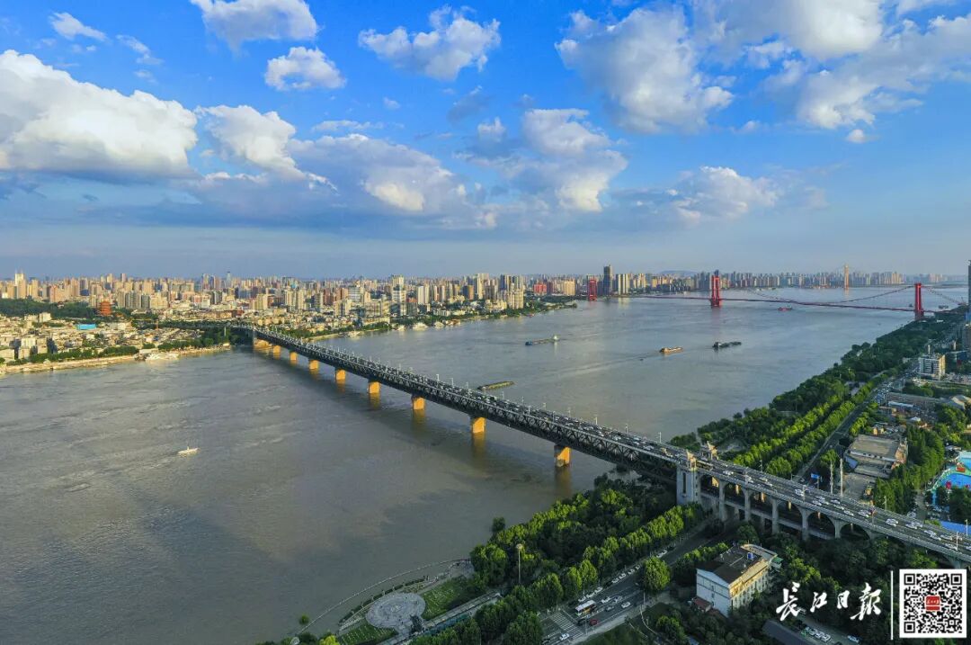 盛夏汛期,长江水位上涨,江面变得宽阔,人们来到桥畔,亲近江水,欣赏桥景。桥梁,不再只是过江通道,它成为武汉人日常生活的一部分。
